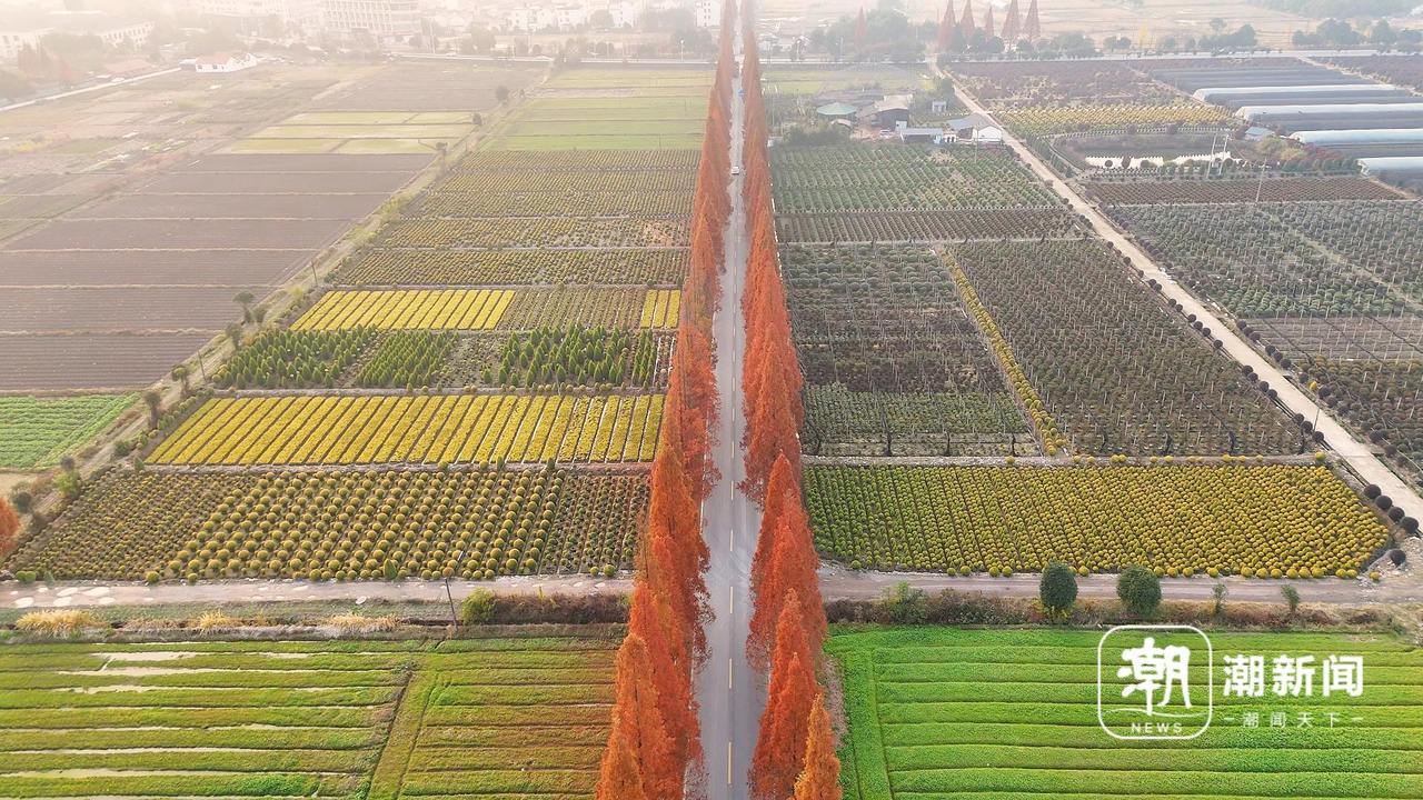 这些水杉如同一列列整齐的“红色方阵”,绵延于武王线两侧。