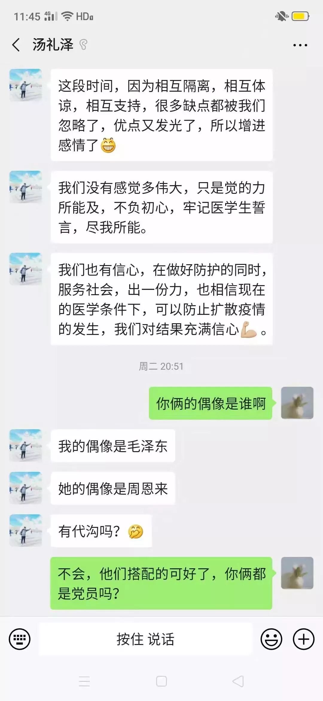 “我们没有觉得自己多伟大,只是尽我所能,不负初心。” 汤礼泽说,他们有信心,在做好防护的同时,服务社会,出一份力,也相信在现在的医学条件下,定将战胜疫情。
