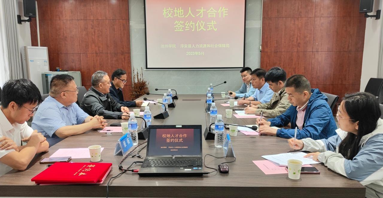 淳安县委人才办、人社局与池州学院举行了人才交流洽谈会。淳安县委组织部副部长蓝公伟向池州学院深入介绍淳安的经济业态、人文历史、交通地域,用“事业舞台+政策优待”,诚邀池州学院学子来淳实习就业。