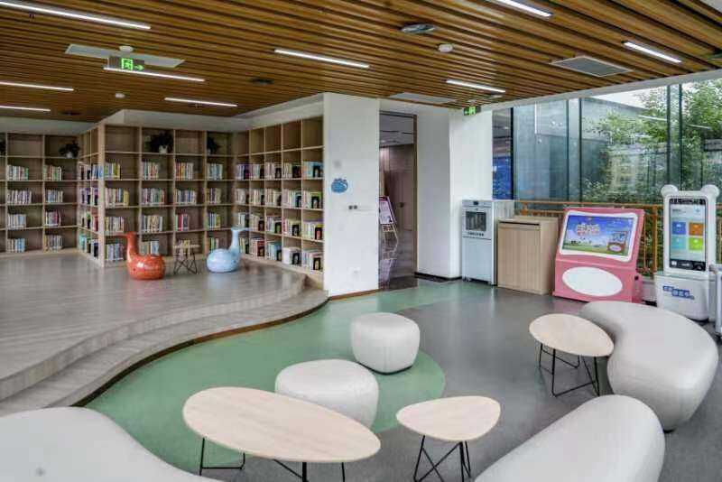 在二楼图书馆,还有两台电子书阅读机。成人款的内置了超过200种的期刊和3000册电子图书,儿童款的电子书阅读机内置了1000个动画资源,可以通过优质的图、文、声、像并茂的多媒体文件,可以将整个学习过程形象化、具体化、生动化,易于促进孩子们的视听和动手操作等多方向实践,提升儿童综合能力发展。