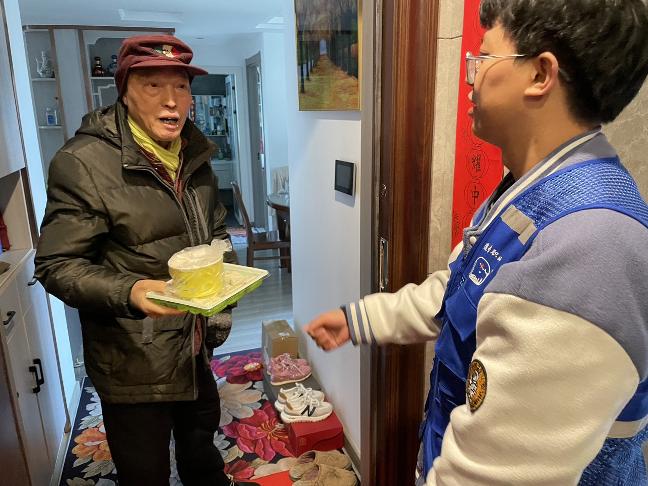 饺子煮好以后,在社区书记汪永虹的带领下,社区工作人员来到小区独居老人、残疾人家中,在这寒冷的天气里,给他们送上热气腾腾的饺子,并提醒他们做好防寒保暖措施,叮嘱他们要保重身体,注意预防冬季流感。看到社区工作人员的到来,大家非常开心,说道:“不管什么时候,社区都能想到我们这些人,端午节包粽子、元宵节送汤圆、临近冬至还给我们煮饺子吃,让我们这心里暖乎乎的。”社区送去的不止是一碗爱心饺子,更让独居老人、残疾人在寒冷的冬日里感受到冬至别样的温暖。