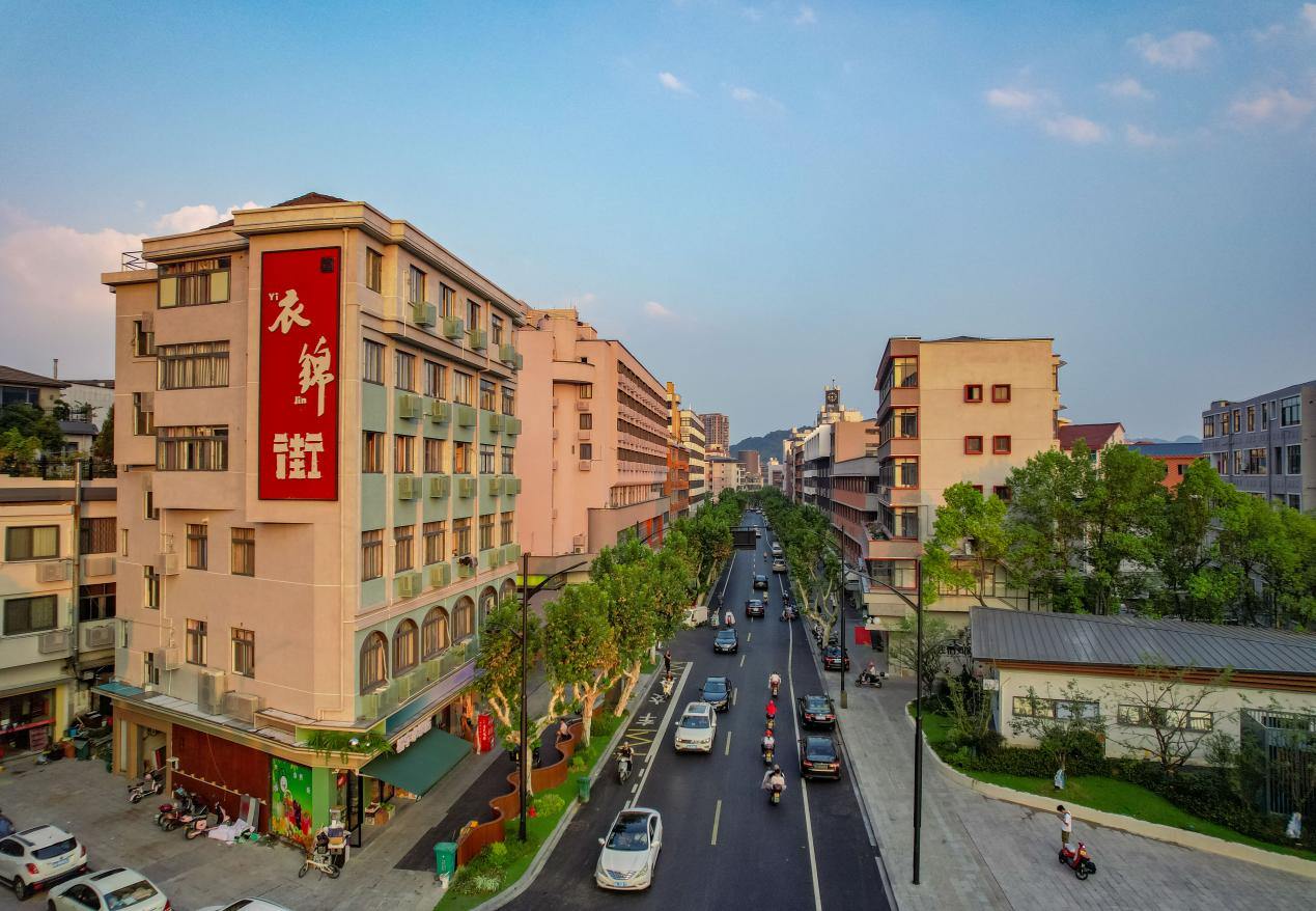 改造后的衣锦街焕然一新,在这里,你可以漫步在石板路上,感受千年衣锦的古韵新风,也可以走进古色古香的店铺,品味质朴人文和传统美食。衣锦街悠远的城市之音,如同时光回响,绵延着临安故事和城市烟火气。