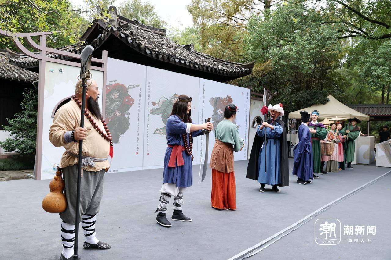 由戴敦邦经典画作改编而成的“水浒秀演”亮相西溪湿地,灵动展现出《水浒传》中的经典人物与场景。