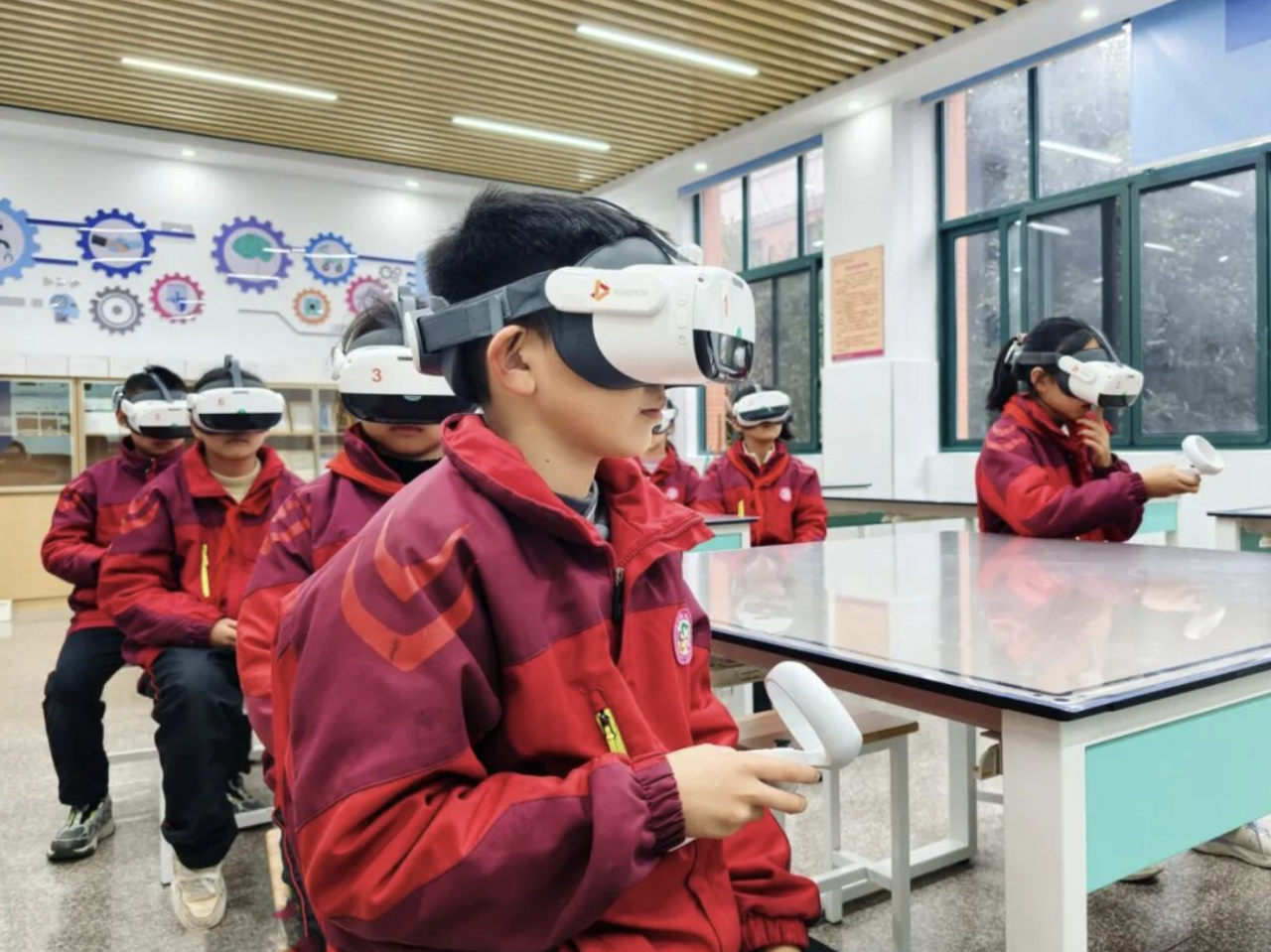 “前不久,我们已投入40余万元资金,增设AI体育项目,添置机器狗、无人机等设备及作文批改系统,建成涵盖‘地球与宇宙、技术与工程、生命科学、物质科学’等科学VI虚拟智慧实验室,为广大师生探索人工智能提供更强保障。”梅溪小学相关负责人说。