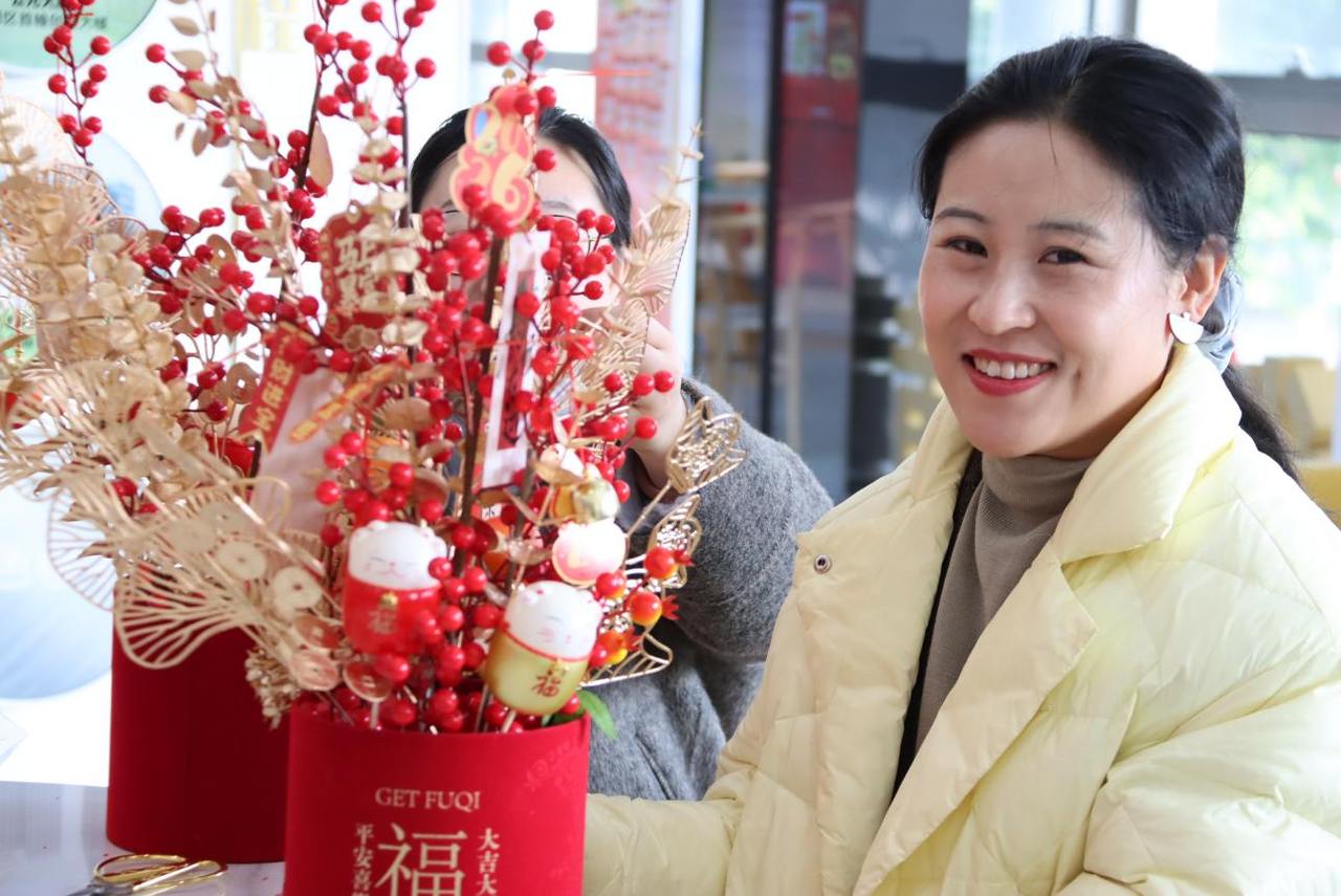 作为辖区企业的“娘家人”,黄龙国际商务社区始终把企业需求放在心上,将精细化服务落到实处。此次年宵花桶DIY活动,正是社区深耕企业服务、丰富企业员工业余生活的生动实践。活动现场布置得温馨雅致,红彤彤的福桶、金灿灿的银杏叶、饱满的冬青果,搭配寓意吉祥的新春挂饰,各类花艺材料琳琅满目,年味十足。