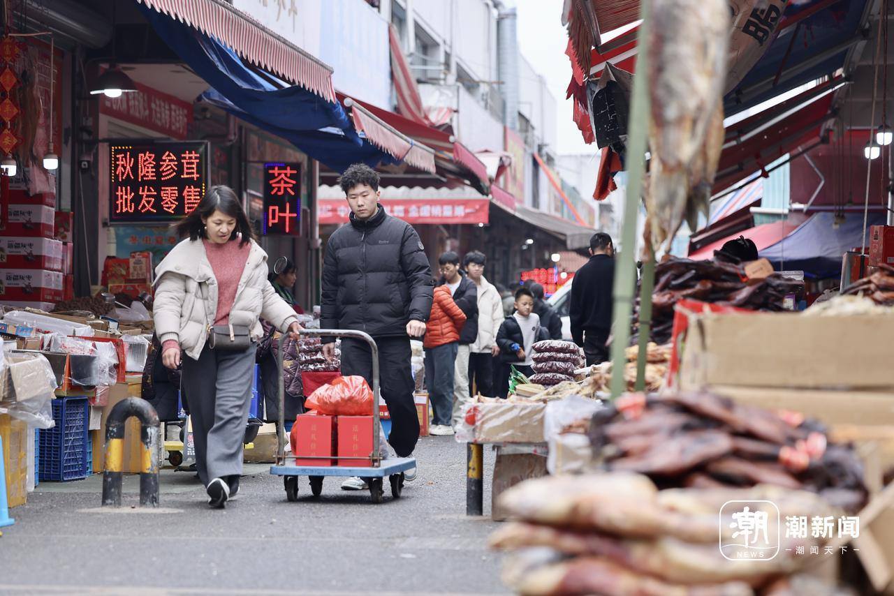 2月13日,浙江新农都物流中心迎来年货置办小高峰,市民走进市场,大包小包为新年“囤货”,年味满满。为了保障年货节这场消费盛宴,整个市场在保障日常批发业务的同时,开启了批发与零售并行的“双核运转”模式。