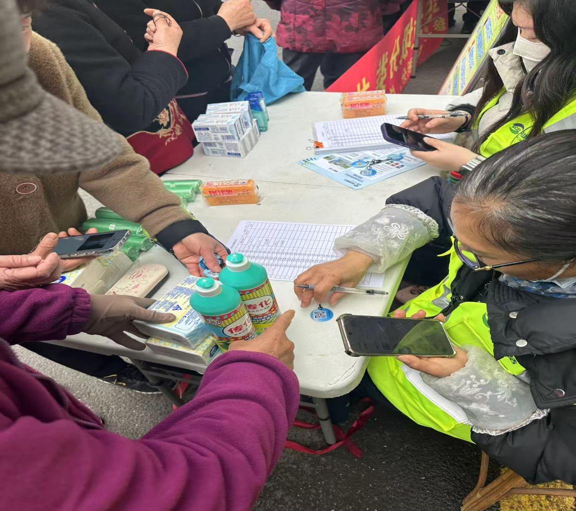 3月23日,东港嘉苑三区门口人头攒动、气氛热烈。笕桥街道东港社区联合杭州智享生活服务有限公司、洁洁城市管理有限公司,共同举办“垃圾分类积分卡免费申领暨积分兑换”专场便民活动。活动现场,居民既可免费申领积分卡,开启绿色分类新体验,也能凭已有积分现场兑换实用暖心好物。一张张小小的积分卡,串联起万千家庭的环保行动,兑换出实用暖心好物,更掀起全民主动分类、争先攒分的绿色新风尚,让垃圾分类从日常小事转化为全民自觉。