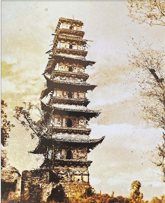 此后,东塔与寺,历千年之光阴,于一次次战火劫难中重生,见证着嘉兴历史的诸多变迁。隋炀帝大业年间,毁于兵燹;唐高祖武德年间重建;唐代宗广德癸卯年间,朱自勉在嘉兴主持屯田,上奏朝廷,将这座距离他屯田之所不远的寺庙命名为“报国禅院”。唐末,东塔寺与塔毁于黄巢起义。