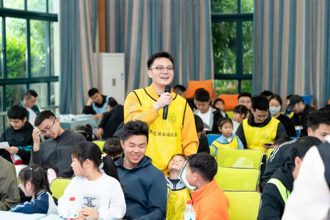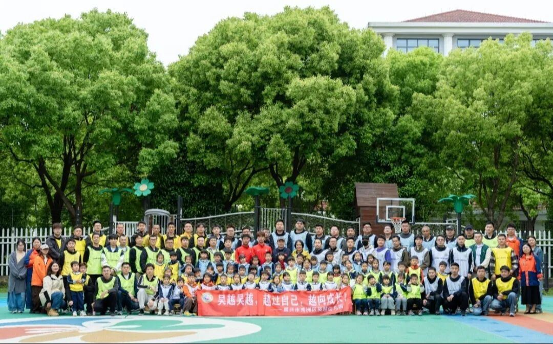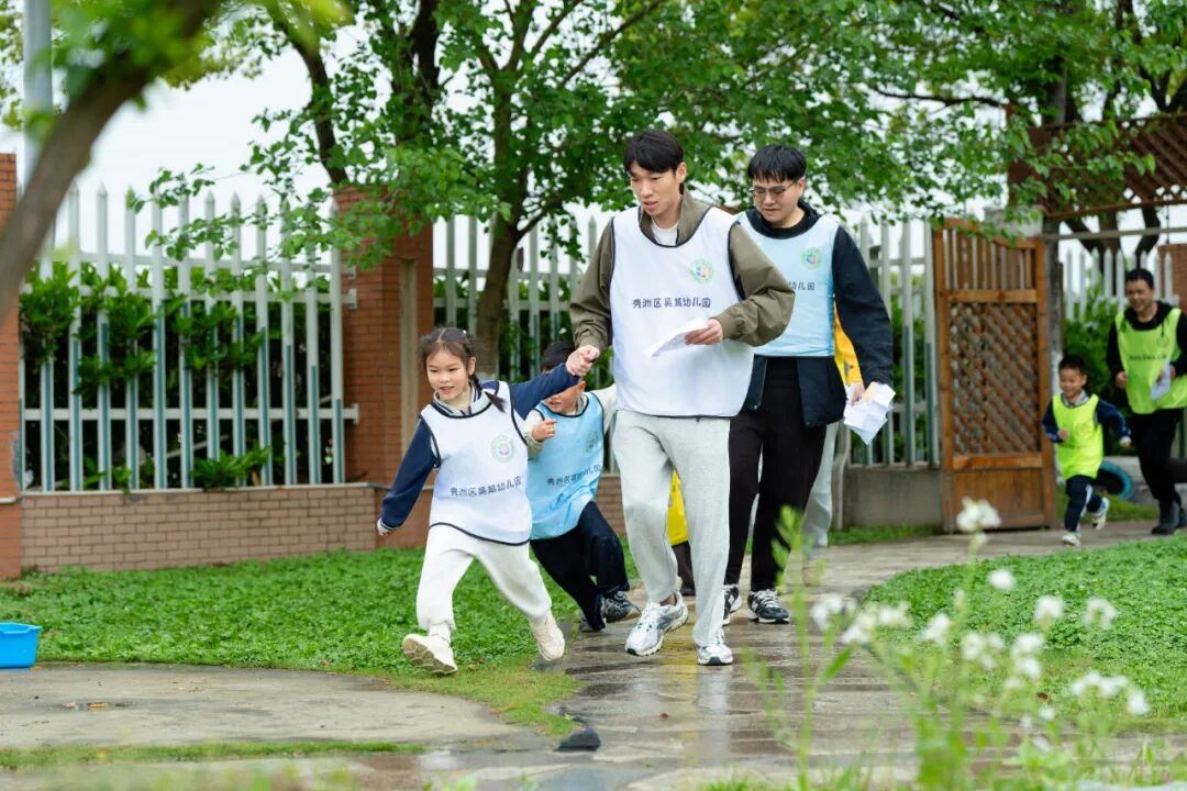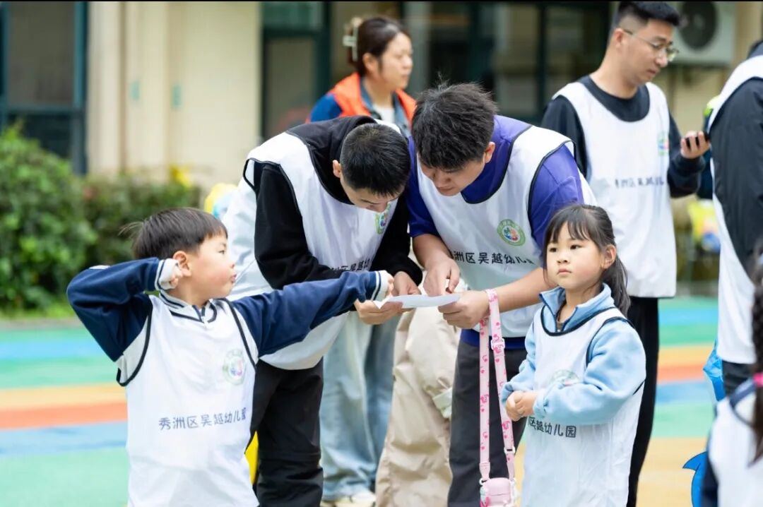 为秉持“健康第一”教育理念,丰富幼儿园游戏课程体系,提升教师定向游戏组织与指导能力,搭建家园共育体育活动实践平台,吴越幼儿园于2026年4月21日开展幼儿定向游戏专题研讨活动。活动特邀嘉兴市定向协会吴全泉会长、沈红英副会长、嘉兴市教育学院吴丽萍老师、吴越杯嘉兴队队员俞阳、俞鑫杰莅临指导,全园57组“爸爸+幼儿”家庭共同参与,全面提升教师专业能力,助力幼儿户外体育活动高质量开展。