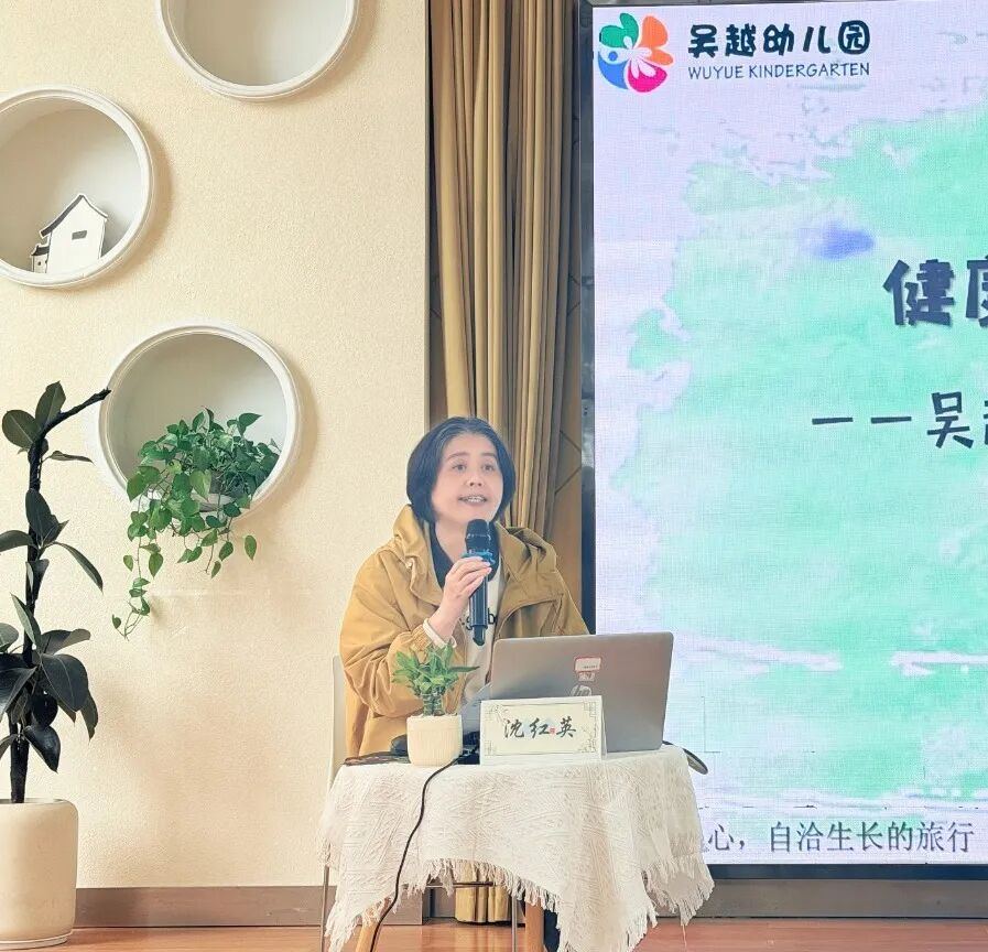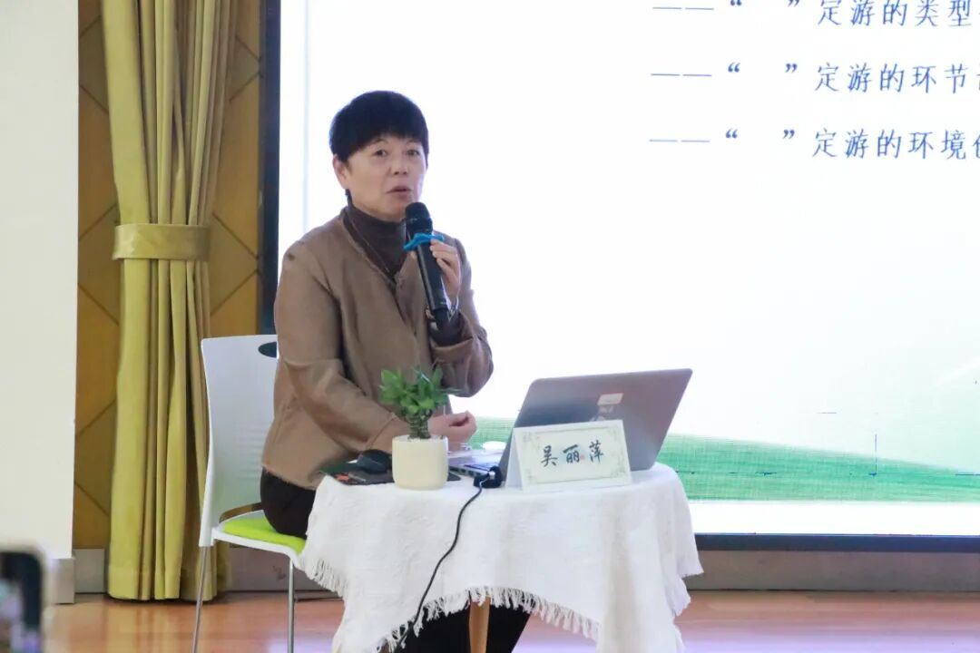 本次定向游戏专题研讨特邀嘉兴市教育学院吴丽萍老师。她为全体教师带来《定向游戏的案例撰写》的专题讲座。吴老师结合实践案例细致讲解了定向游戏的概念以及园所定游的顶层设计,为教师梳理定向游戏案例写作框架、思路与方法指明了方向,特别强调研究案例撰写时要聚焦“定运”“定游”凸显定向游戏的特征,助力教师总结教学经验。