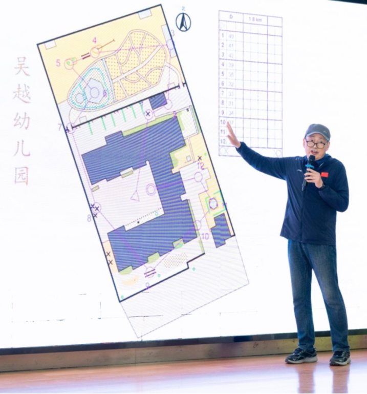 13:00,沈会长就三节定向游戏活动给予高度评价,肯定了教师们的专业,也对每个活动提出可优化的建议,鼓励大家积极实践。吴全泉会长与教师们一起了解定向运动的过去、现在,以及它背后的意义。随后,他紧扣《3—6岁儿童学习与发展指南》,从孩子的“空间感培养”“学会合作”“解决小问题”这几个方面,细细讲解了定向游戏对幼儿园孩子成长的重要作用。