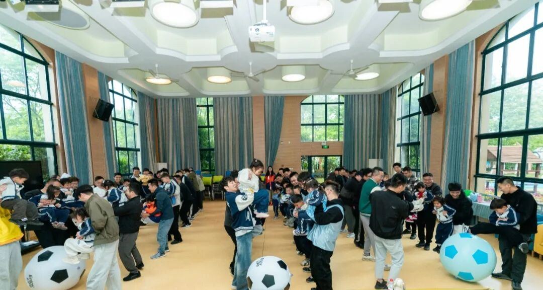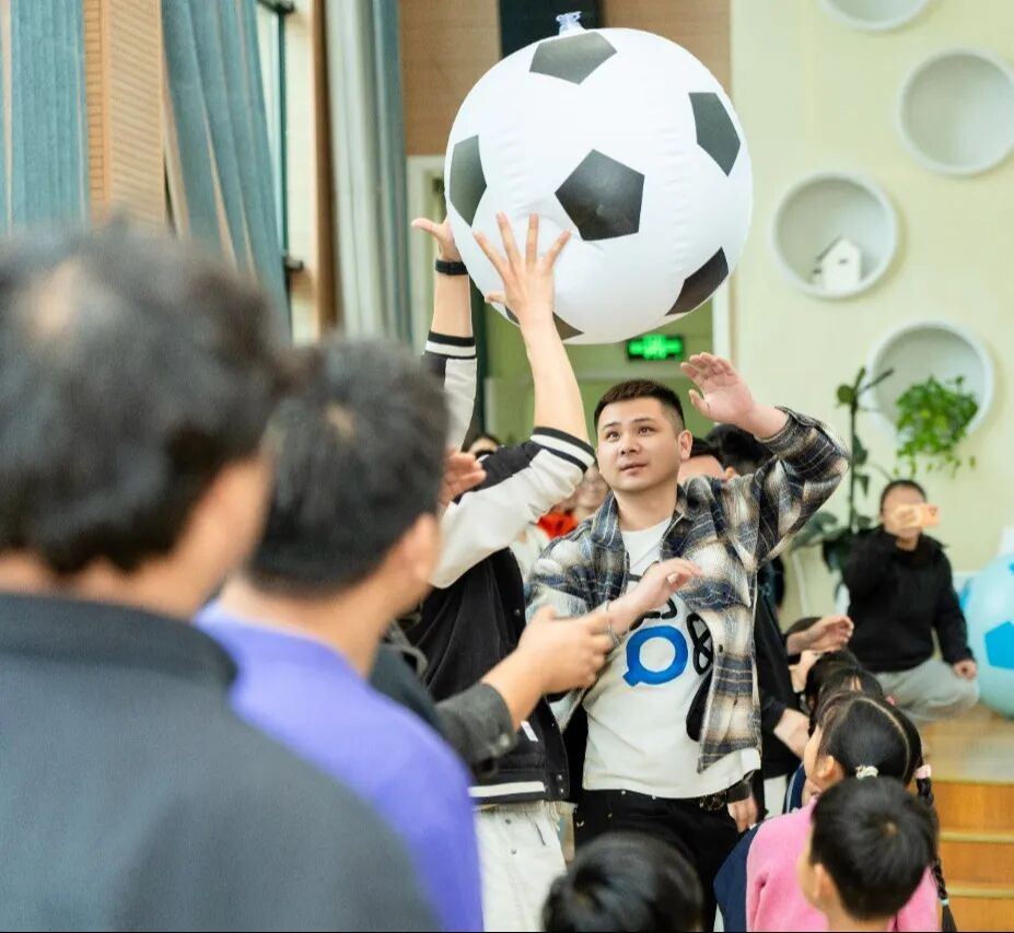 火热的定向游戏后,活动热情依然不减。在杨老师的带领下,现场氛围持续高涨,亲子律动操、趣味足球传递……亲子配合默契,笑声不断,欢乐不停。
