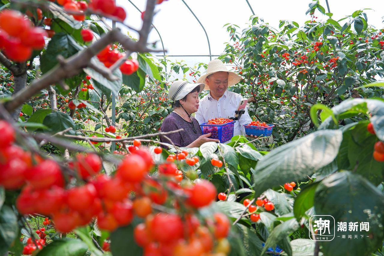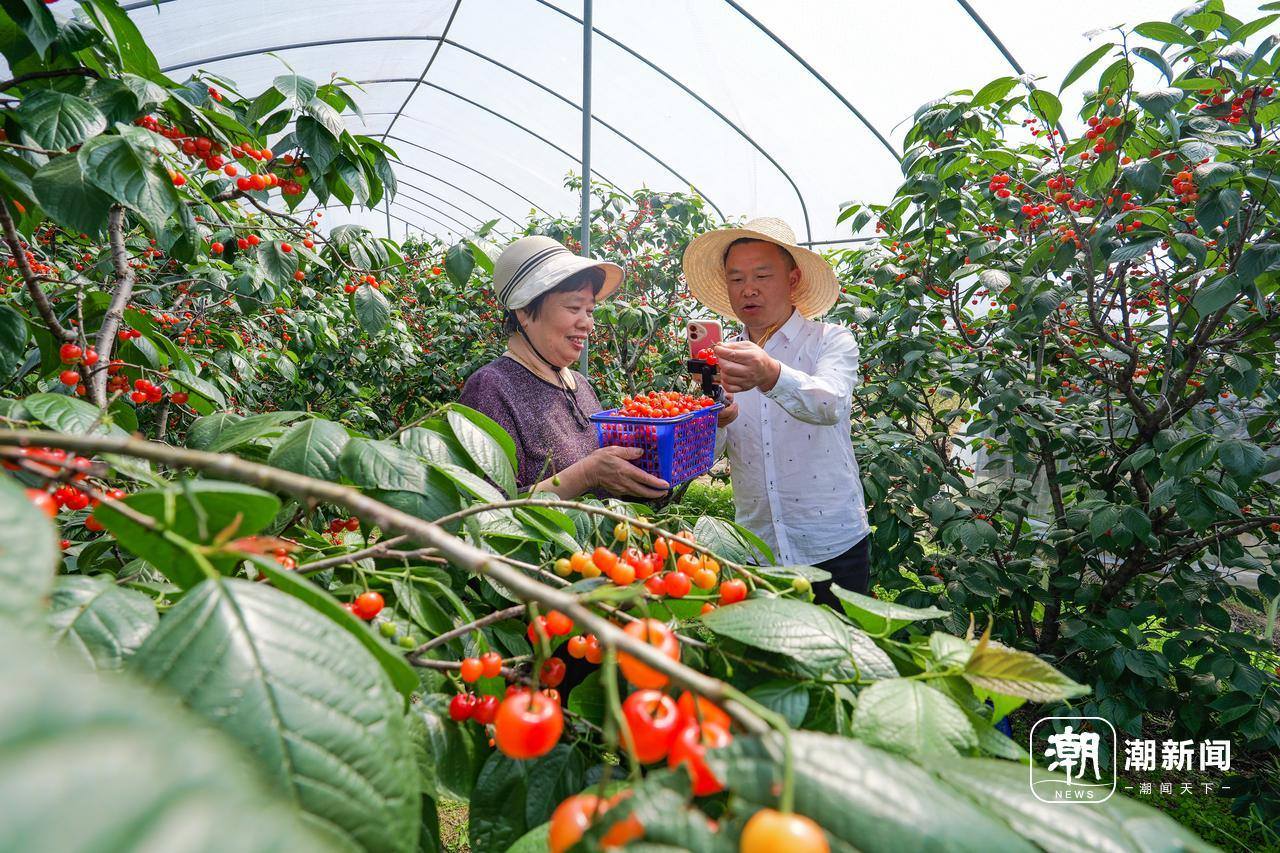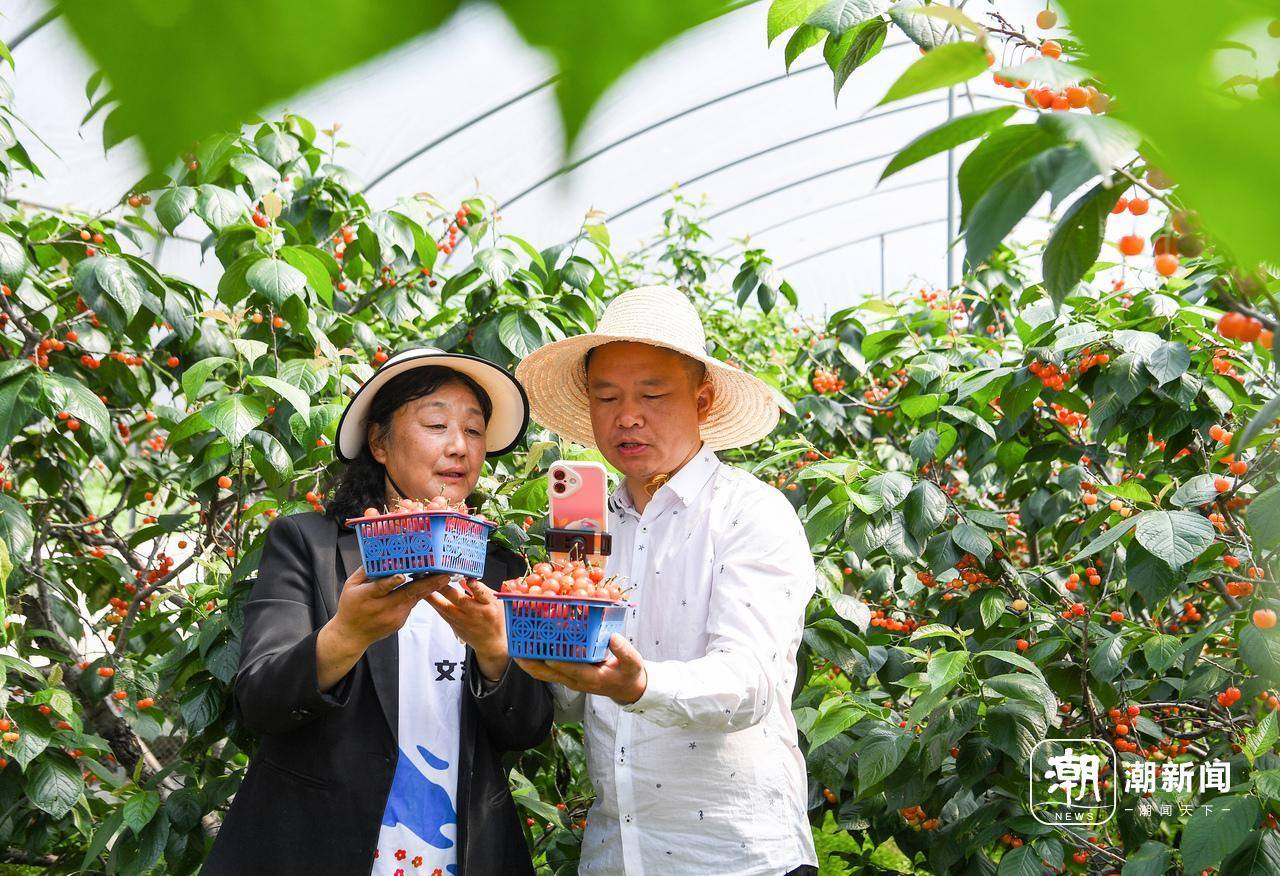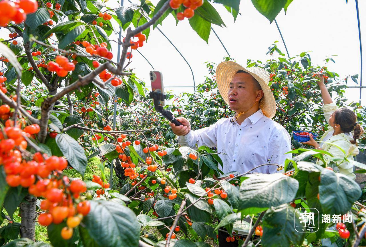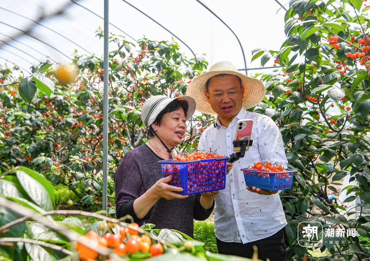 4月26日,金华市金东区赤松镇虎岩村党员助农队成员在大棚里帮助农户直播销售樱桃。眼下,虎岩村种植的1300多亩樱桃迎来丰收,临近“五一”假期,党员助农队抢抓文旅消费契机,提前直播引流预热,吸引游客上门采摘,盘活乡村特色产业,助力农户在家门口实现增收。