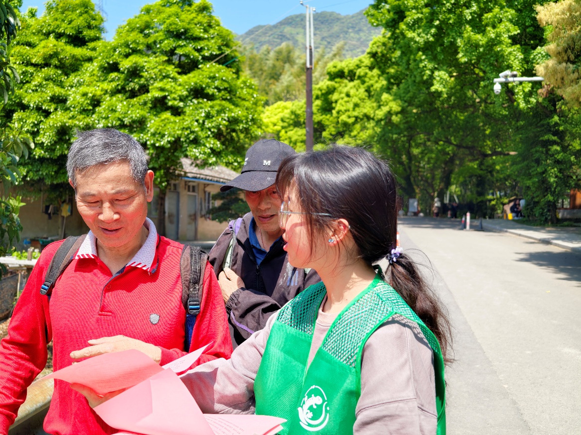 随后,活动转移至柴桥街道瑞岩景区——棘螈的重要栖息地。之后,一部分志愿者化身为棘螈保护宣传员,向来景区游玩的本地居民和游客发放倡议书,耐心讲解棘螈保护知识,呼吁爱护景区环境、不打扰棘螈栖息。另一部分志愿者在林场工作人员的专业指导下,分组在林间开展巡育保护工作,清理栖息地杂物和水域内白色垃圾及漂浮杂物,尽力守护棘螈生存环境,将保护理念转化为实际行动。