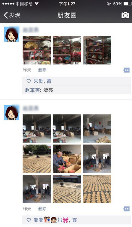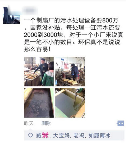 截至今天中午,城镇君“浙江在线·微说城镇”已在后台收到了微友回馈的多个集赞截图。其中,微友赵女士在朋友圈发的精美扇子成品照片和昌硕故里的照片得到了朋友圈的关注;傅先生发在朋友圈的知青文化年代的歌,唤起了朋友们关于那个年代的记忆;王夫人更是对扇子企业在发展和环保方面的责任心感到敬佩,在朋友圈赢得了共鸣。