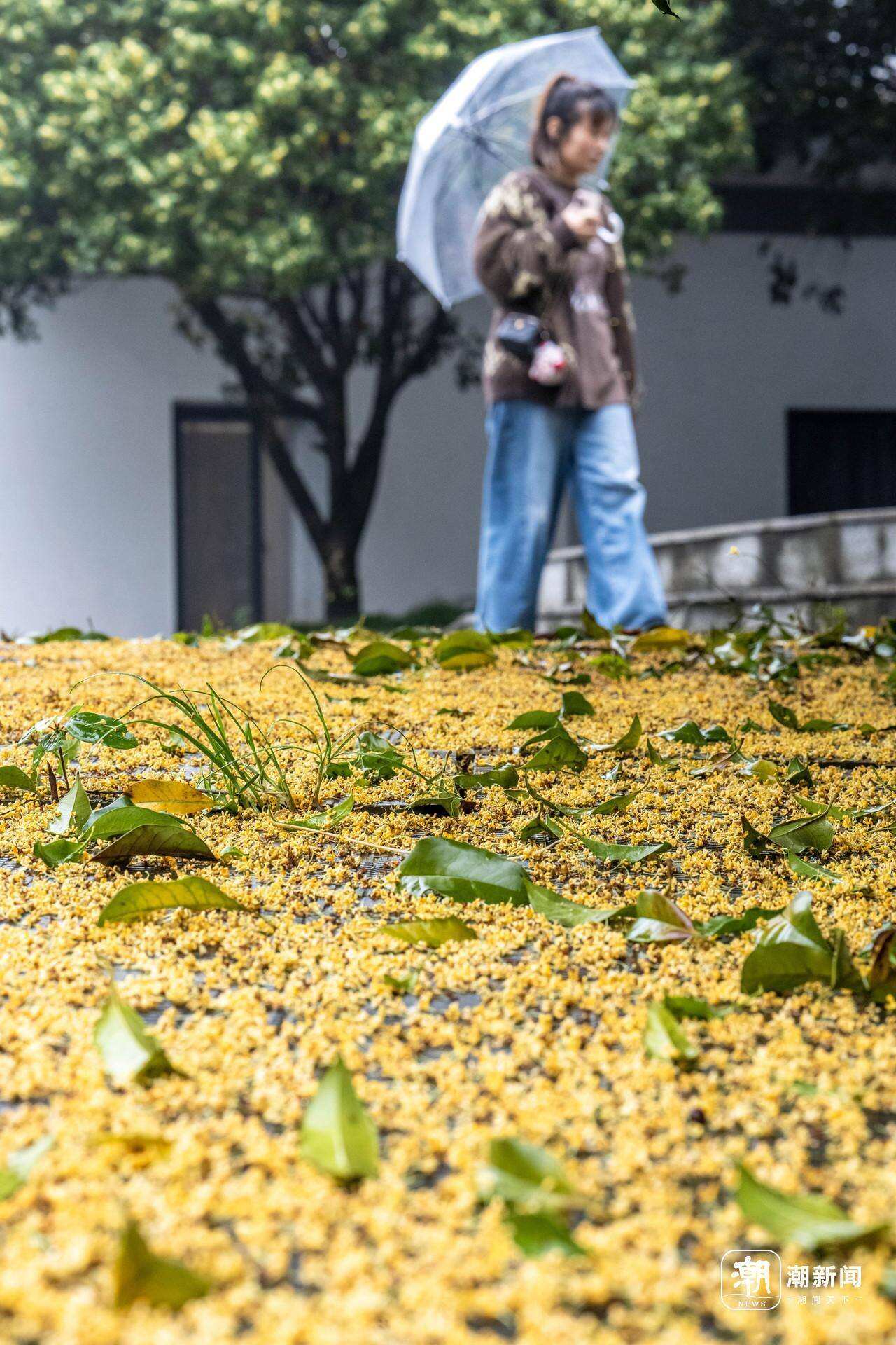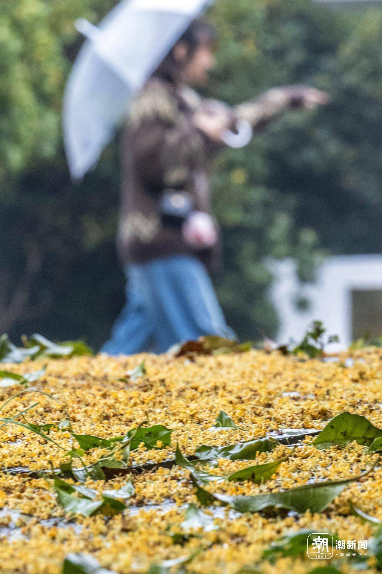 11月6日,杭州市滨江区陈家村,陆续前来的游客刚走近百米桂花长廊,就被空气中弥漫着的清香吸引,踱步于满地“金黄”之间,"秋香"更是沁人心脾。11月7日,立冬节气,随着秋风秋雨的影响,今年的桂花季也将逐渐进入尾声。
