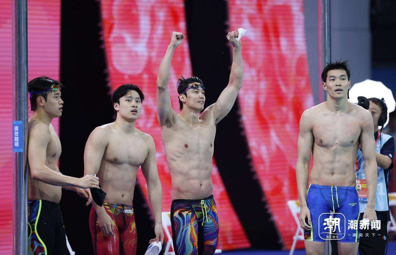 在男子4×100米自由泳接力决赛中,浙江队派出潘展乐、汪顺、何峻毅、沈加豪参赛,最终以3分15秒01的成绩蝉联该项目金牌。