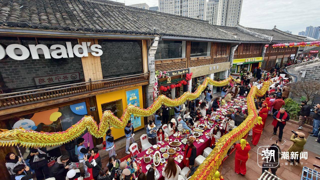 202.6米长桌,350余道宁波特色佳肴。近日,“来宁波·过大年”2026宁波文旅新春系列活动之长桌宴在宁波海曙南塘老街开席。市民游客“吃大席、逛大集、看大戏”,共赴一场承载传统年俗、融汇多元体验的新春文化盛宴。