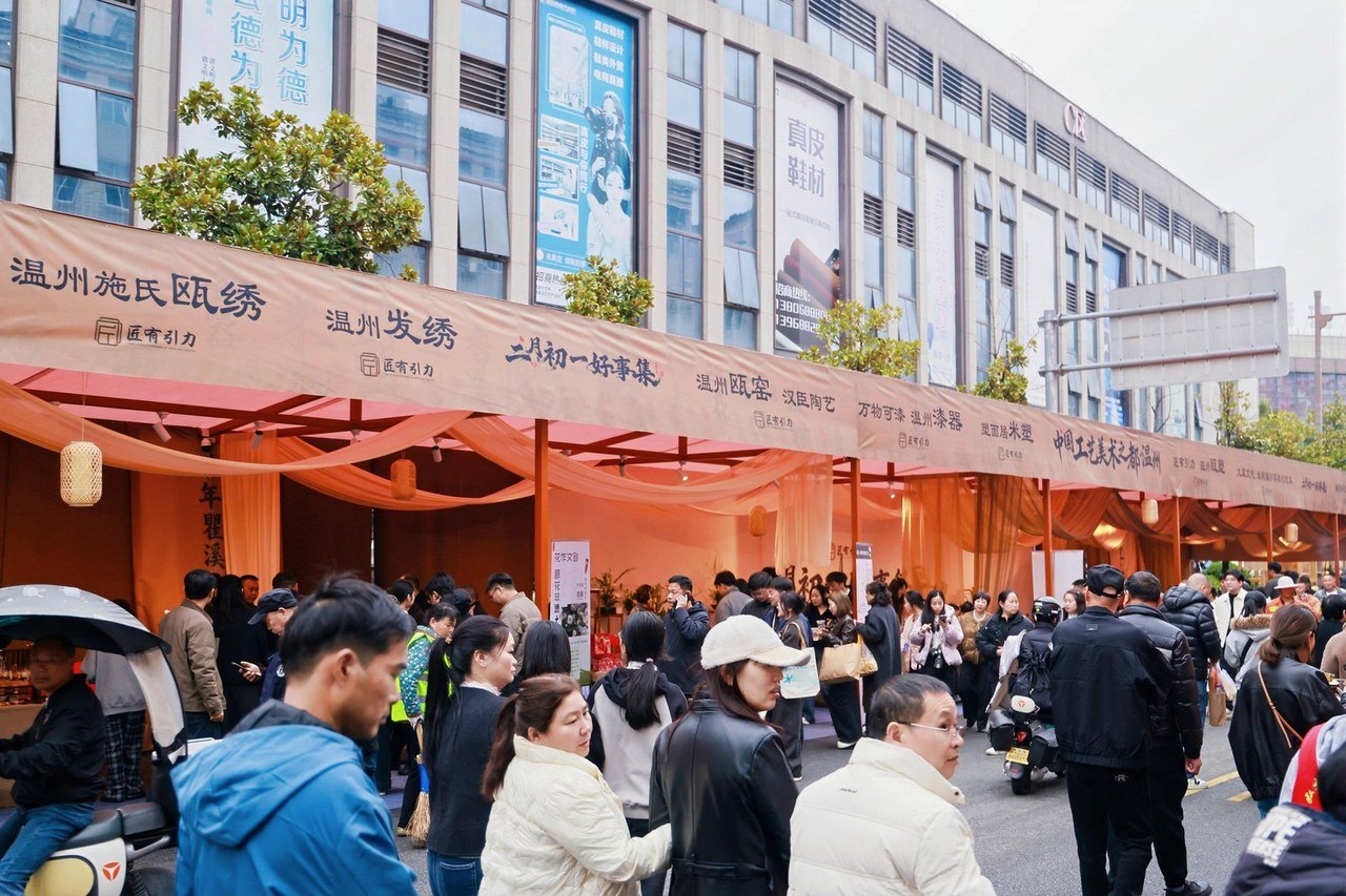 “二月初一”会市是浙南古镇瞿溪的传统民俗节日,延续千年,当地年俗可追溯到唐代“中和节”(即二月初一)。作为浙南地区影响最大、规模最大的传统会市,瞿溪“二月初一”会市融合传统民俗与会市业态,生动展现瓯越非遗活态民俗文化。与往年单一的民俗展演、市集贸易不同,今年会市紧扣瞿溪特色文化创新规划,国风板块深度聚焦瞿溪百年皮艺等本土非遗,现代潮流板块汇聚百余家美食与日用百货,未来科技板块则引入新能源车与智能互动体验,实现全业态覆盖,满足不同年龄层游客的消费与体验需求。