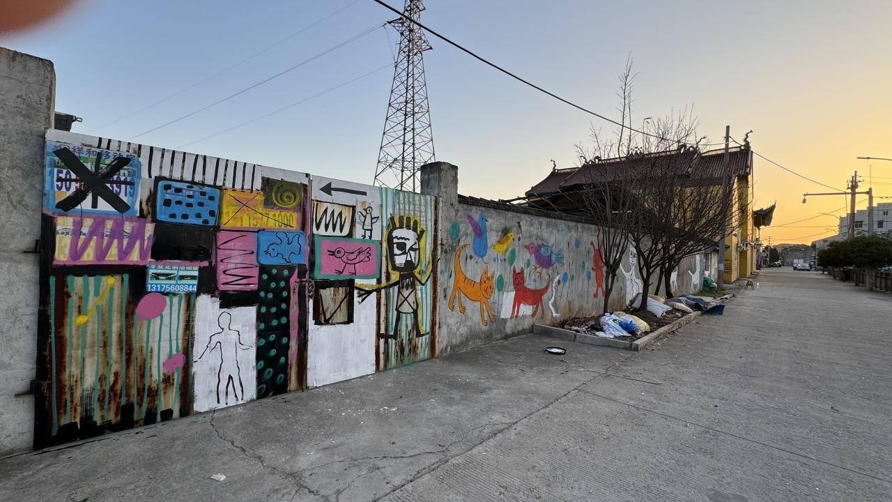 这种即兴、观念先行的创作,与国际街头艺术同频,谢云斌说:“我有一位在法国的朋友看到后惊叹,他没想到这些墙绘会出现在中国的乡村里。”