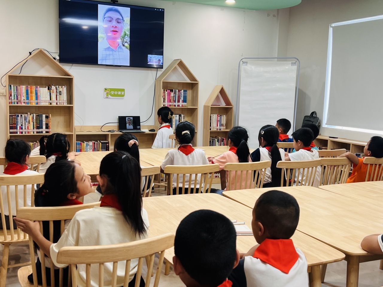 “博士你是研究什么呀?”“上海复旦大学的图书馆好大。”“哥哥,我也想去复旦大学读书。”今年,双溪口乡邀请了复旦大学在读博士潘威康通过视频连线的方式带小朋友们接续“云游”上海复旦大学图书馆,分享自己大学的精彩生活。