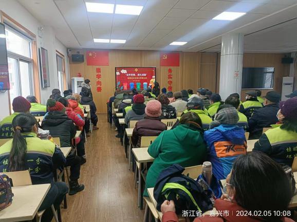 为持续深入推进城市生活垃圾分类,进一步将垃圾分类工作做实做细,不断提升垃圾分类的精细化管理,2月5日上午,南湖区南湖街道桂苑社区在春节来临之际,组织居民和垃圾分类劝导员共七十余人,在新时代文明实践站召开垃圾分类“龙年贺春,源头减量”倡议会。