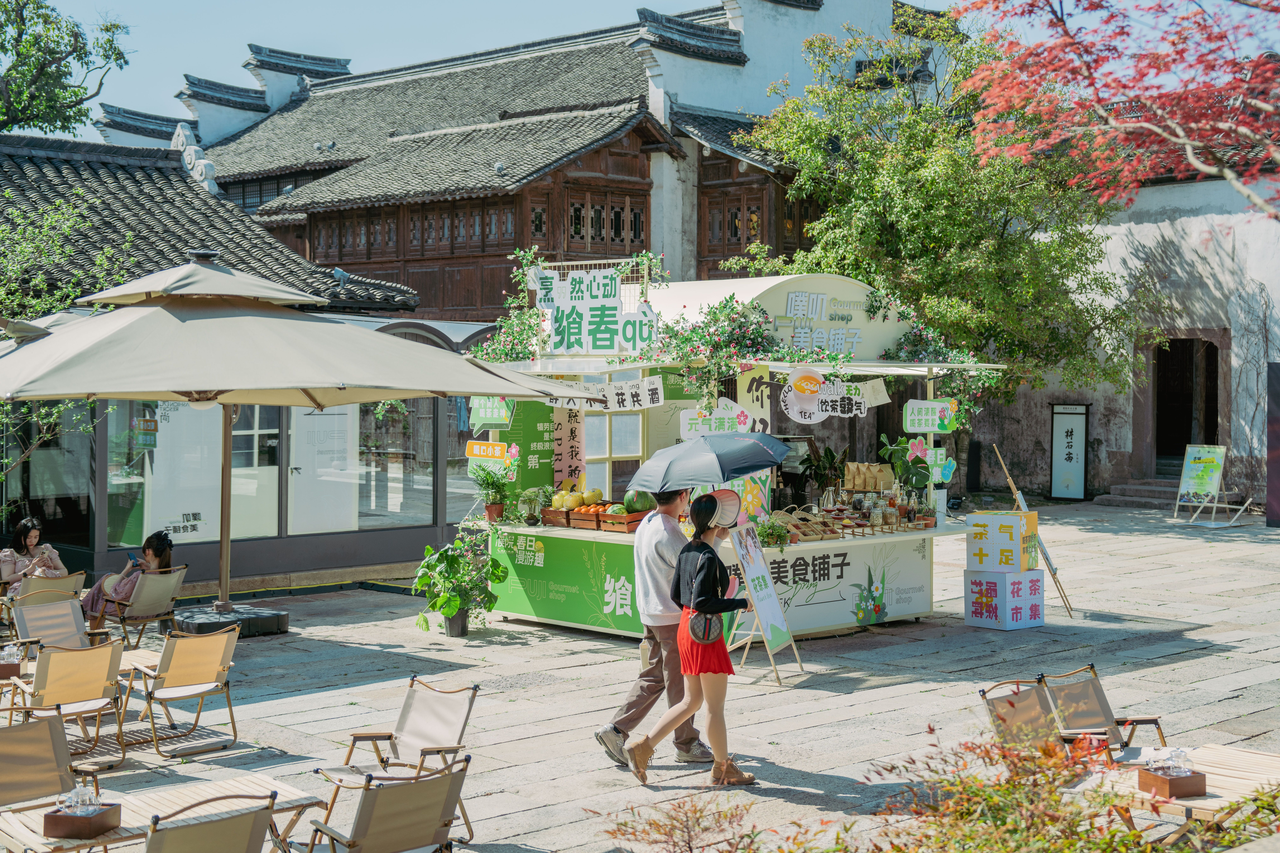 “花漾集好市”主题市集,通过场景化消费创新,集结非遗手作、在地美食与花艺美学,构建起全龄段消费场景。漫步古镇的棋盘街巷,近40处多元主题餐饮空间共塑“舌尖上的风情”,更有“春熙花茶会”等特色咖啡、茶饮体验——游客不仅可以体会“一元一碗”的老底子情怀,感受“临河品禅意”的雅致,亦可在水雾缭绕的潄芳禅园内,化身为宋人体验点茶的乐趣。由艺术家@葛多多不多 打造的巨型艺术装置“三花喵喵”也将成为流量焦点,“留洋千金”“Lolita公主”“猫少爷”等年轻人喜爱的角色化身为“一日店长”,实现“味觉+视觉+社交”三重沉浸式体验。
