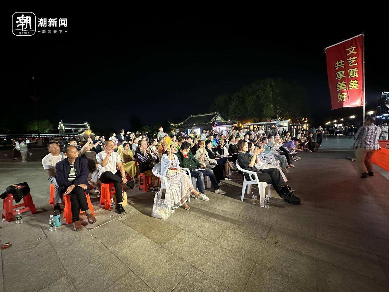 夜色渐浓,比赛正酣,越来越多的本地群众和游客聚集起来,为这场文化盛宴驻足。唱到耳熟能详的歌曲时,台下偶有观众忍不住合唱起来。