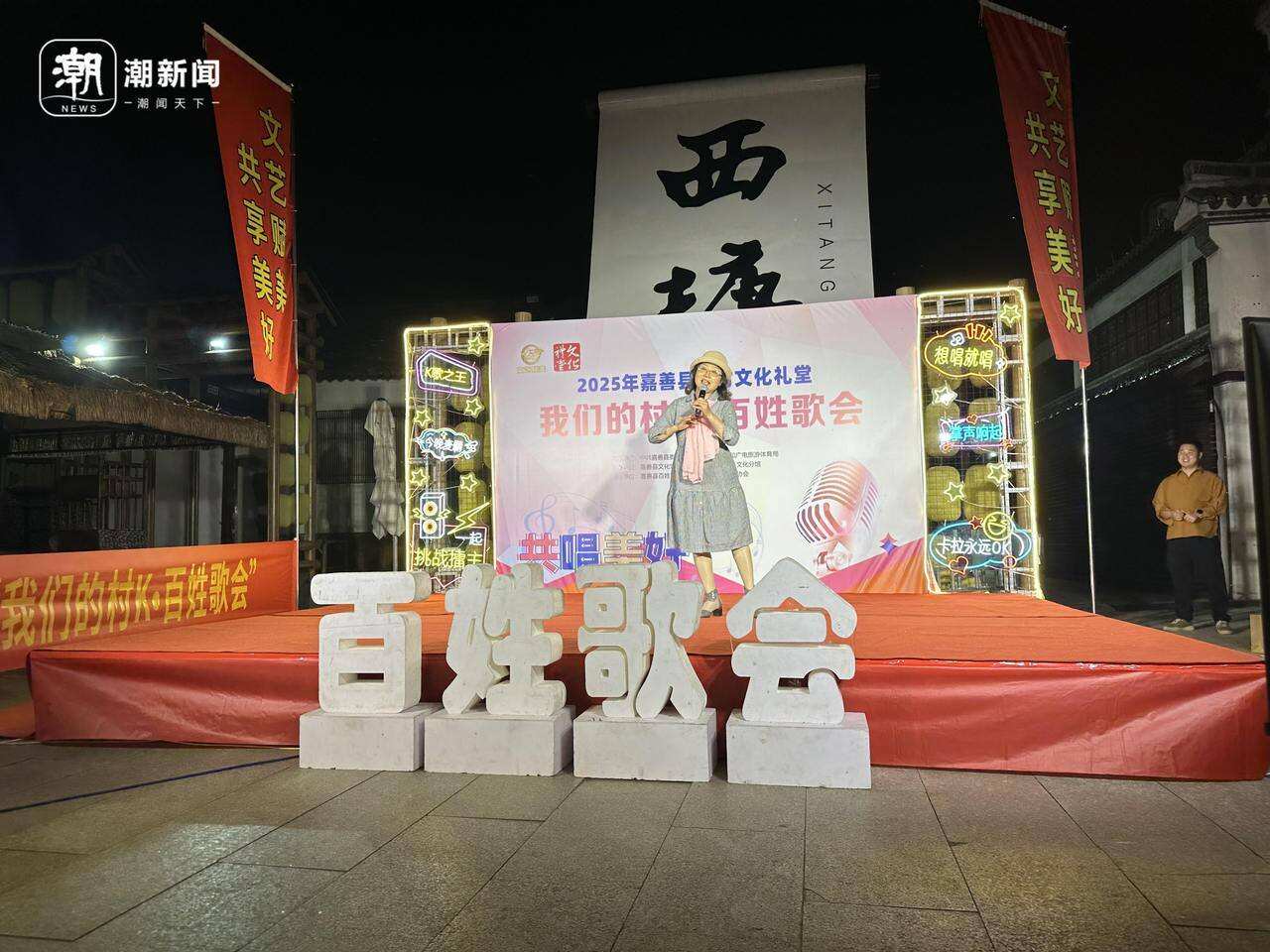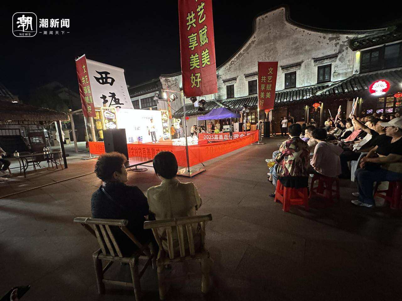 5月25日18时30分,嘉善县西塘古镇景区里的五姑娘主题公园里,歌声阵阵、人头攒动,500多名观众把一个小舞台围了个水泄不通。当晚,2025年嘉善县农村文化礼堂“我们的村K·百姓歌会”首场巡回擂台赛开赛,短短2个小时,吸引了20多名本土歌手、游客上台打擂。