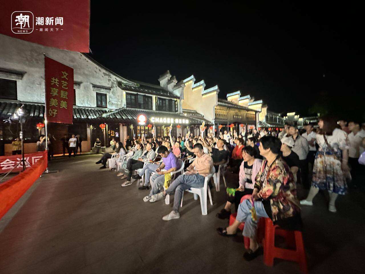 “今年这氛围好,去年活动还是在文化礼堂办的,今年流动到公园来了,来听歌的人就更多啦!”60岁的张大妈住在西塘镇大舜集镇上,当晚特地骑了十多分钟电动车,赶去活动听歌看演出。还有几个上台挑战的选手,是她邻村的好友,张大妈就和老姐妹组成了亲友团,给好友邻居喊加油打气。