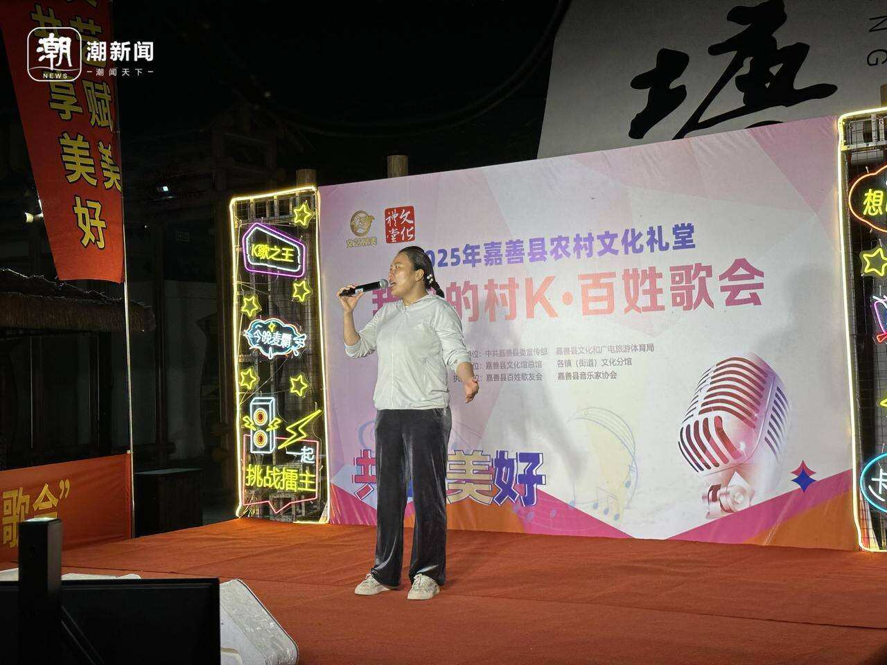 5月25日晚,2025年嘉善县农村文化礼堂“我们的村K·百姓歌会”首场巡回擂台赛开赛。记者 顾雨婷 摄