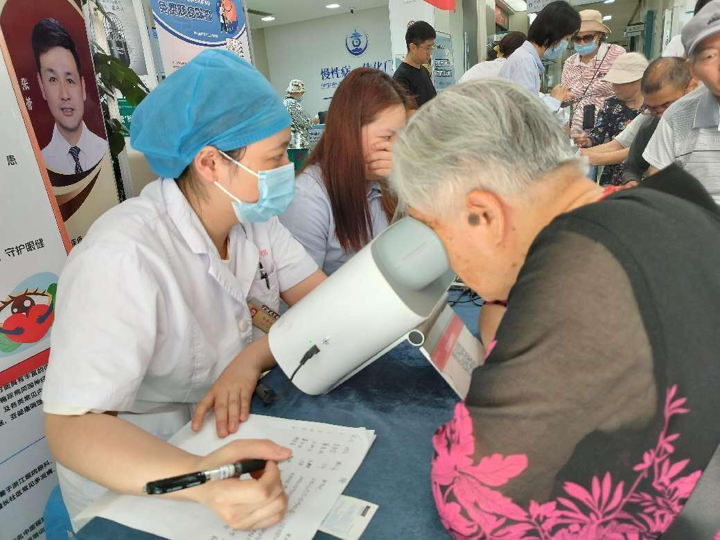 6月5日至6日活动这两天,灵隐街道社区卫生服务中心中医李氏眼科的张季云医师携带一系列专业设备,为每一位居民提供免费眼病、糖尿病眼病等细致入微的眼健康筛查服务。张医师通过精密的仪器,仔细观察居民的眼部结构,不放过任何一个细微的异常。
