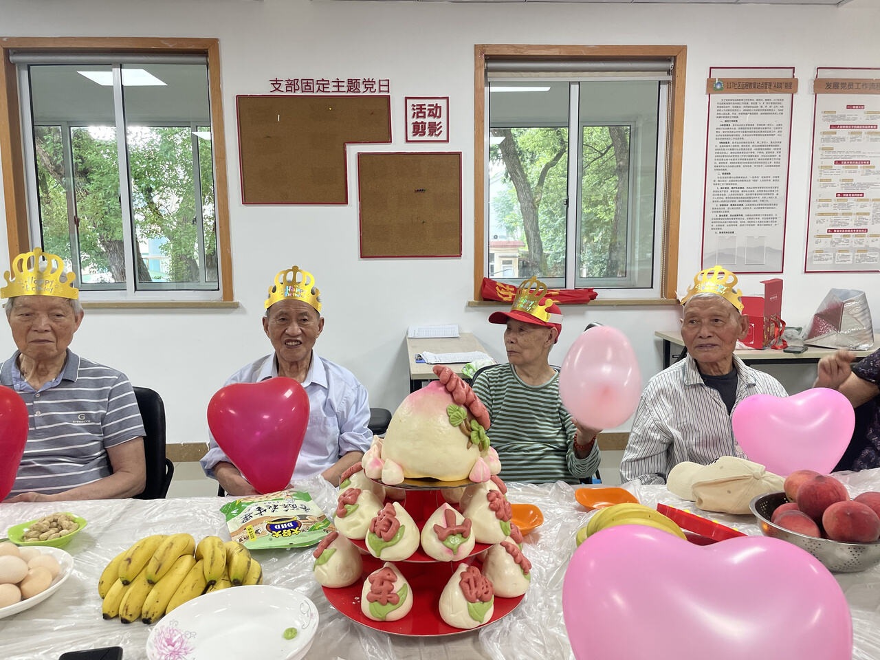 生日祝福环节温馨满满。社区工作人员推出了巨型寿桃,烛光摇曳间,全场齐唱生日歌,向老兵们送上最真挚的祝福。老兵们双手合十,许下心愿,脸上洋溢着幸福的笑容。随后,社区志愿者为每一位老兵送上精心准备的生日贺卡和纪念品,贺卡上书写着对老兵们的感恩与祝福。