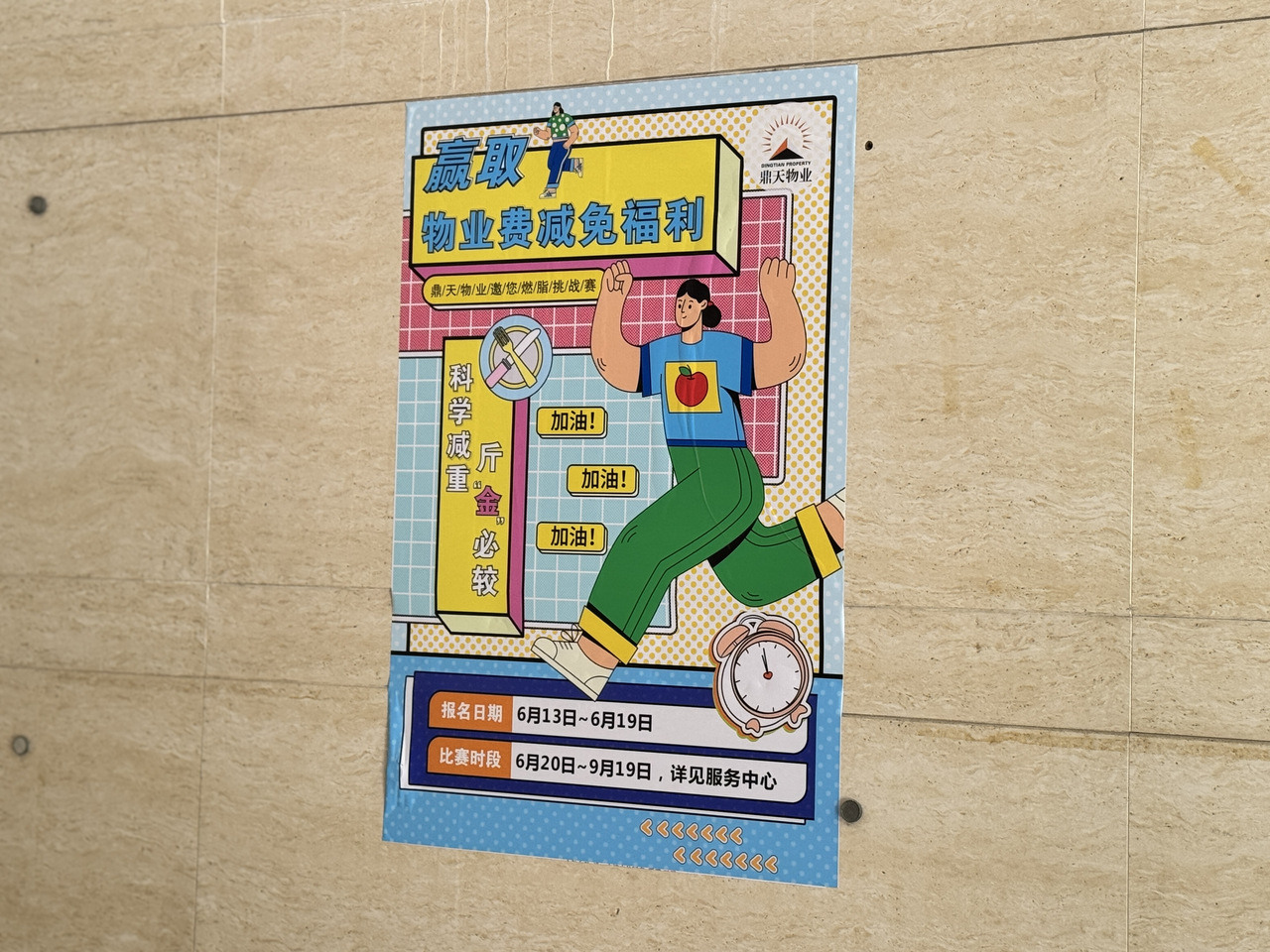 今年暑期,面向18-60周岁的业主,该小区物业鼎天物业开展了“科学减重‘斤’‘金’必较”——每减重一斤,就能减免30元2025年物业费。
