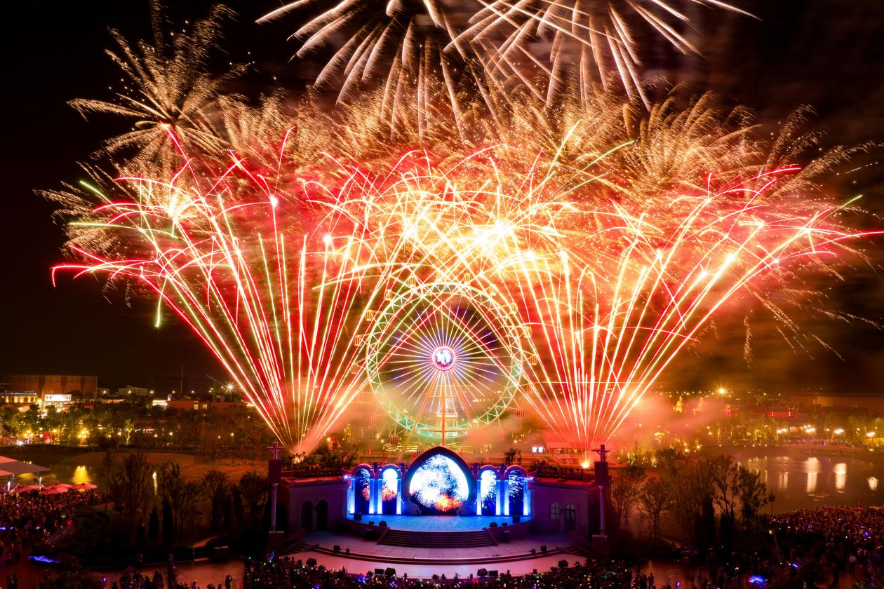 当夜幕降临,乐园的狂欢氛围再度升级,精彩纷呈的歌舞表演将陆续上演。而每晚的压轴大戏,则是备受期待的“万山红遍”主题烟花秀。届时,璀璨的烟花在夜空中绚烂绽放,将节日的氛围推向高潮,为游客的假日旅程留下宏大而浪漫的夜间记忆。