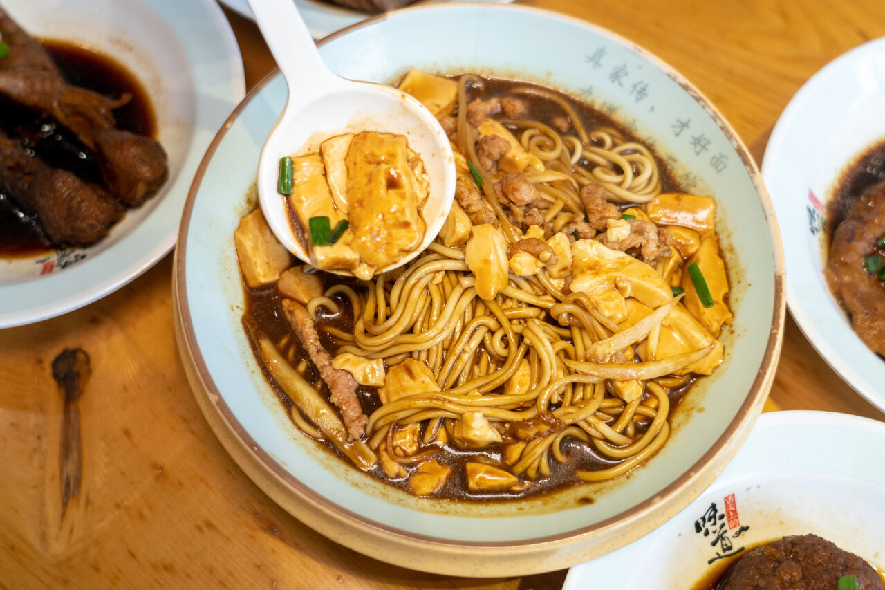 做这碗面时,豆腐也有讲究,“老一点炖起来不容易碎,还能吸满汁。”先像烧家常豆腐那样,再倒上秘制卤汁慢炖,“等豆腐吸透了卤香,再把细面煮好拌进去,不像别家是汤面分开,我们这样煮,面能裹满豆腐的卤味,一口下去,又鲜又滑,还有点回甜。”