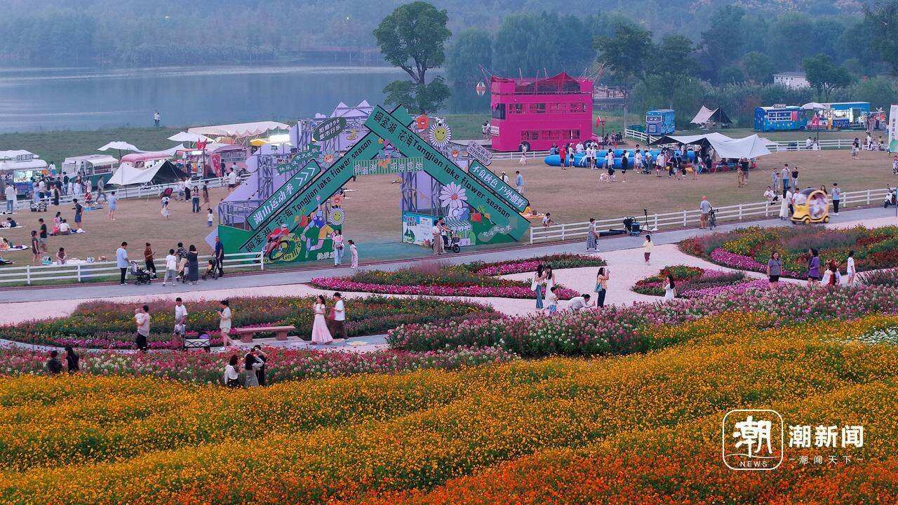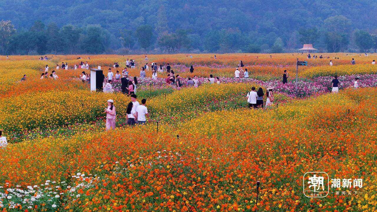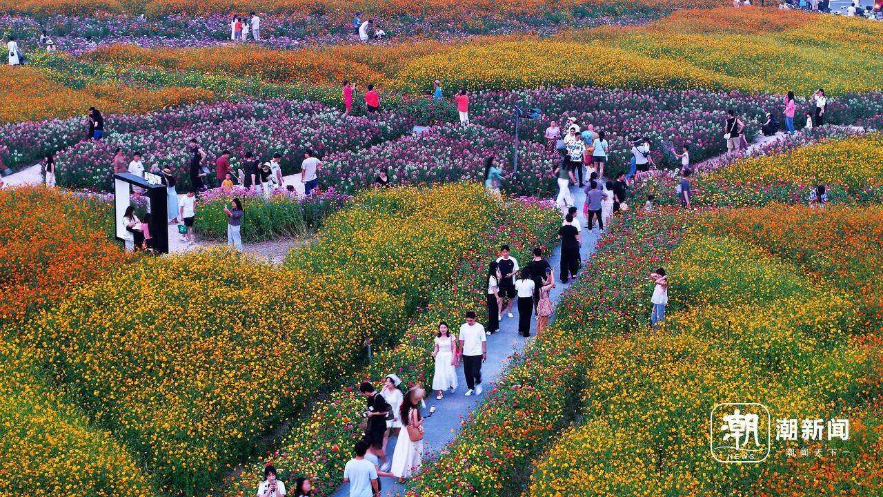 10月13日,位于杭州市西湖区的铜鉴湖花海绚烂绽放,波斯菊、向日葵、千日红、香彩雀等多种花卉竞相争艳,五彩斑斓,美不胜收。市民、游客置身其中,仿佛走进了“童话世界”。14日起,弱冷空气开始影响杭州,最高气温将降至30℃以下,市民可享受凉爽的赏花体验,在习习凉风中散步花海,感受季节更替的浪漫,在六万余平方米的花海里享受秋日画卷。