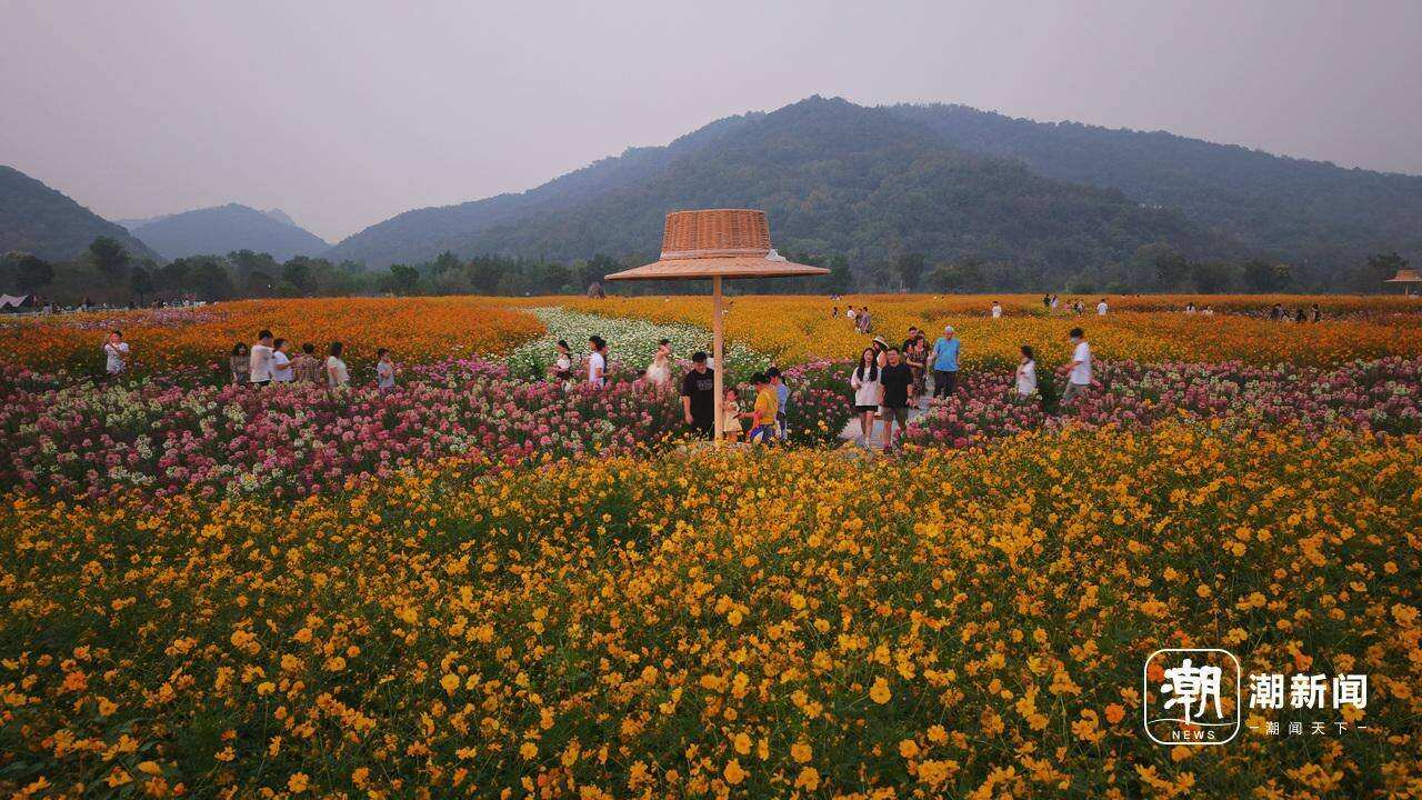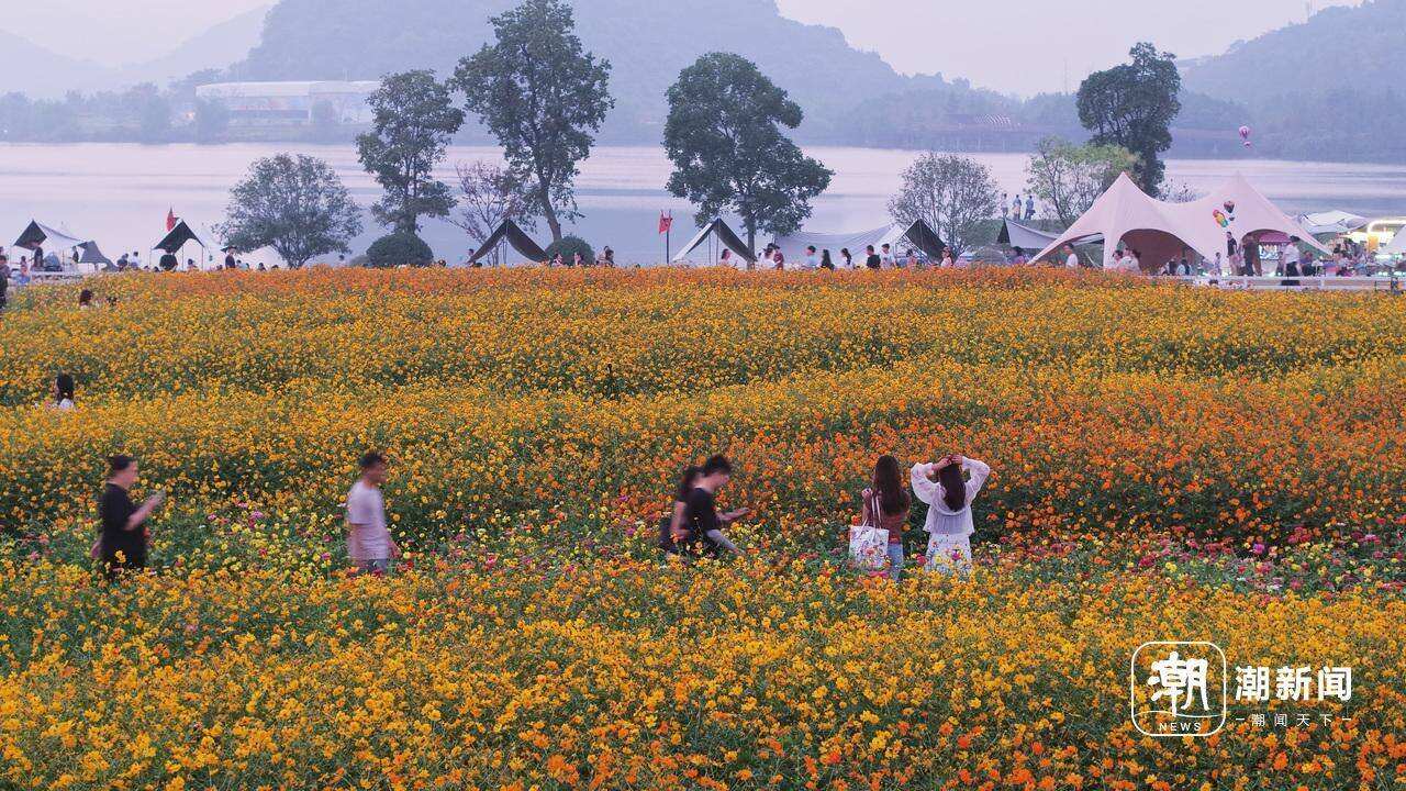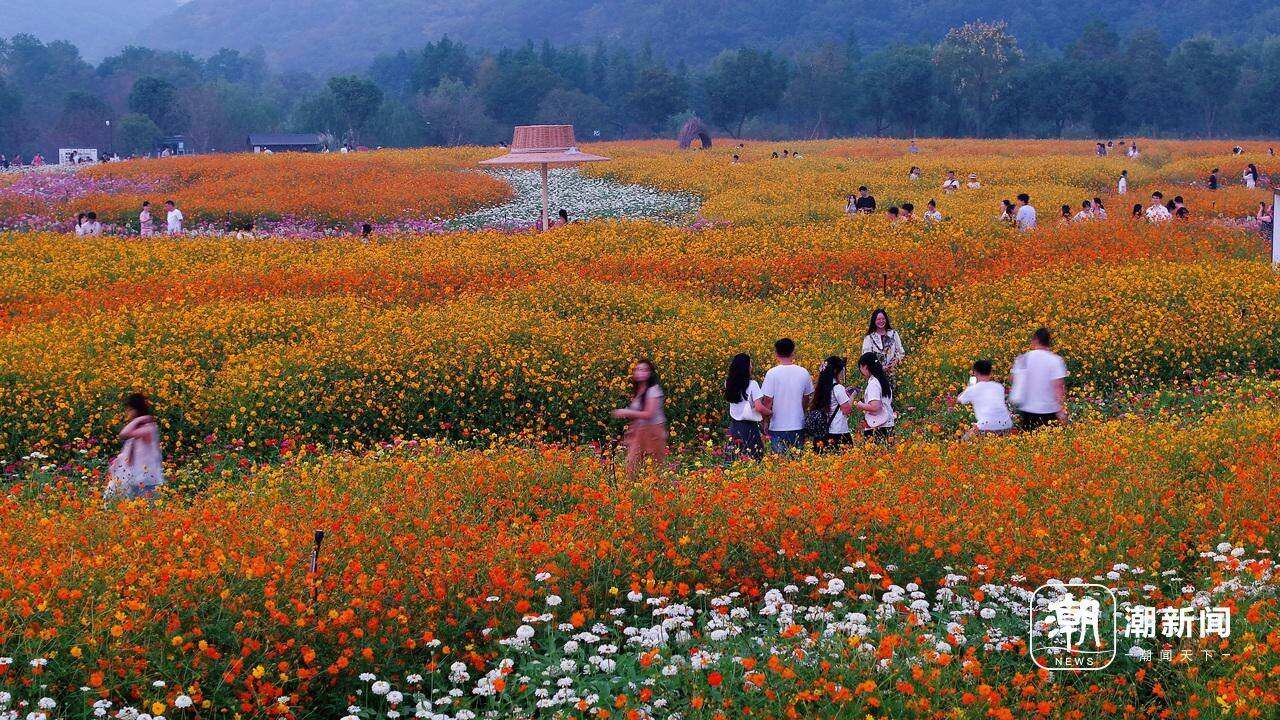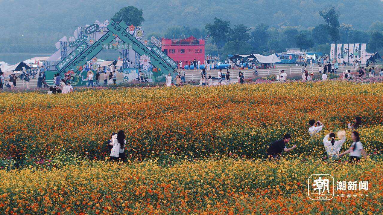 10月13日,位于杭州市西湖区的铜鉴湖花海绚烂绽放,波斯菊、向日葵、千日红、香彩雀等多种花卉竞相争艳,五彩斑斓,美不胜收。市民、游客置身其中,仿佛走进了“童话世界”。14日起,弱冷空气开始影响杭州,最高气温将降至30℃以下,市民可享受凉爽的赏花体验,在习习凉风中散步花海,感受季节更替的浪漫,在六万余平方米的花海里享受秋日画卷。
