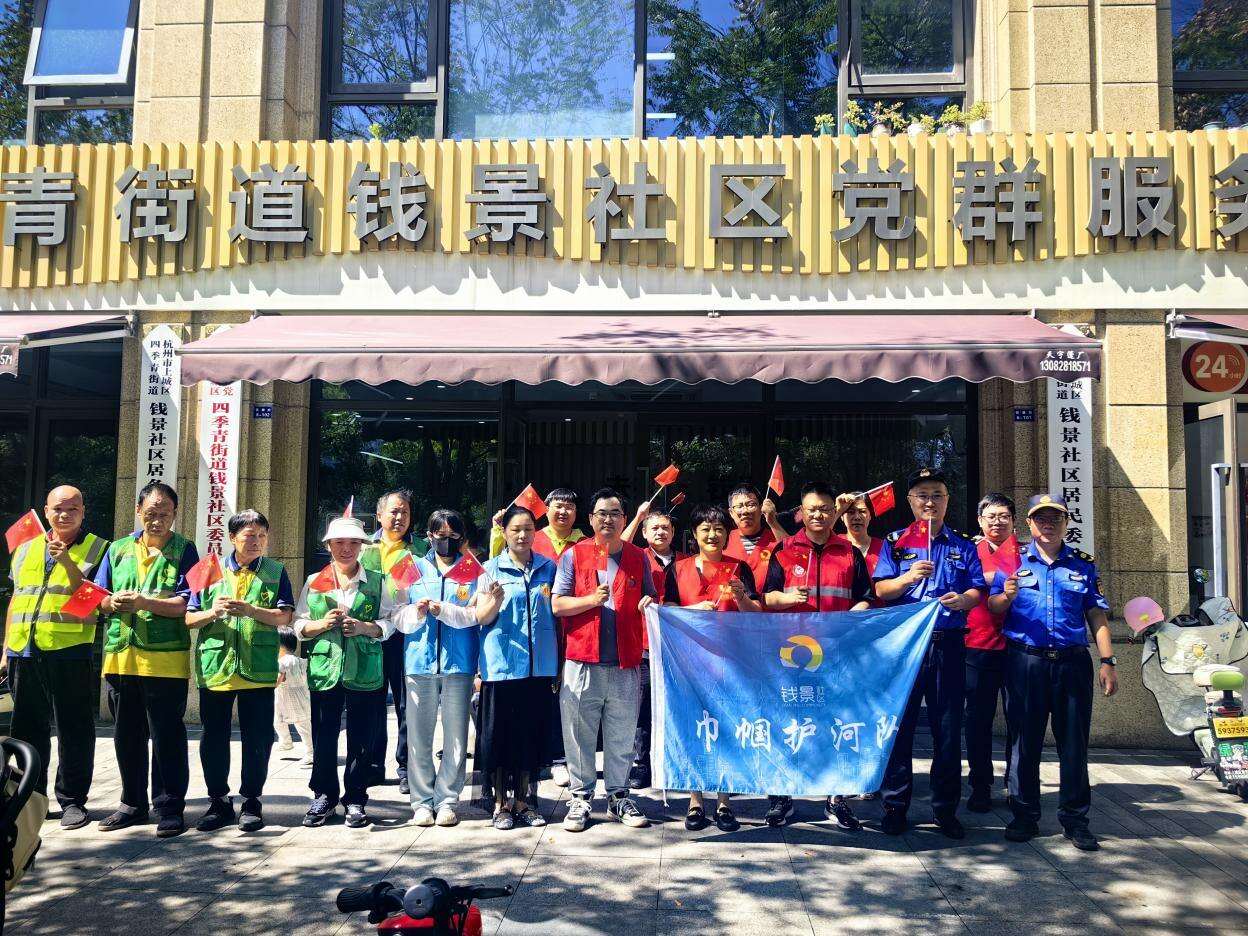 浙江在线10月15日讯 近日,杭州上城区四季青街道钱景社区的垃圾分类志愿者、“绿马甲”公益团队与“巾帼护河队”携手街道综合行政执法队,在美丽的运河畔,开展了一场别开生面的巡河护绿活动。醒目的红、绿马甲及执法蓝交相辉映,将责任担当与生态情怀,一同绽放在初秋的运河岸边。