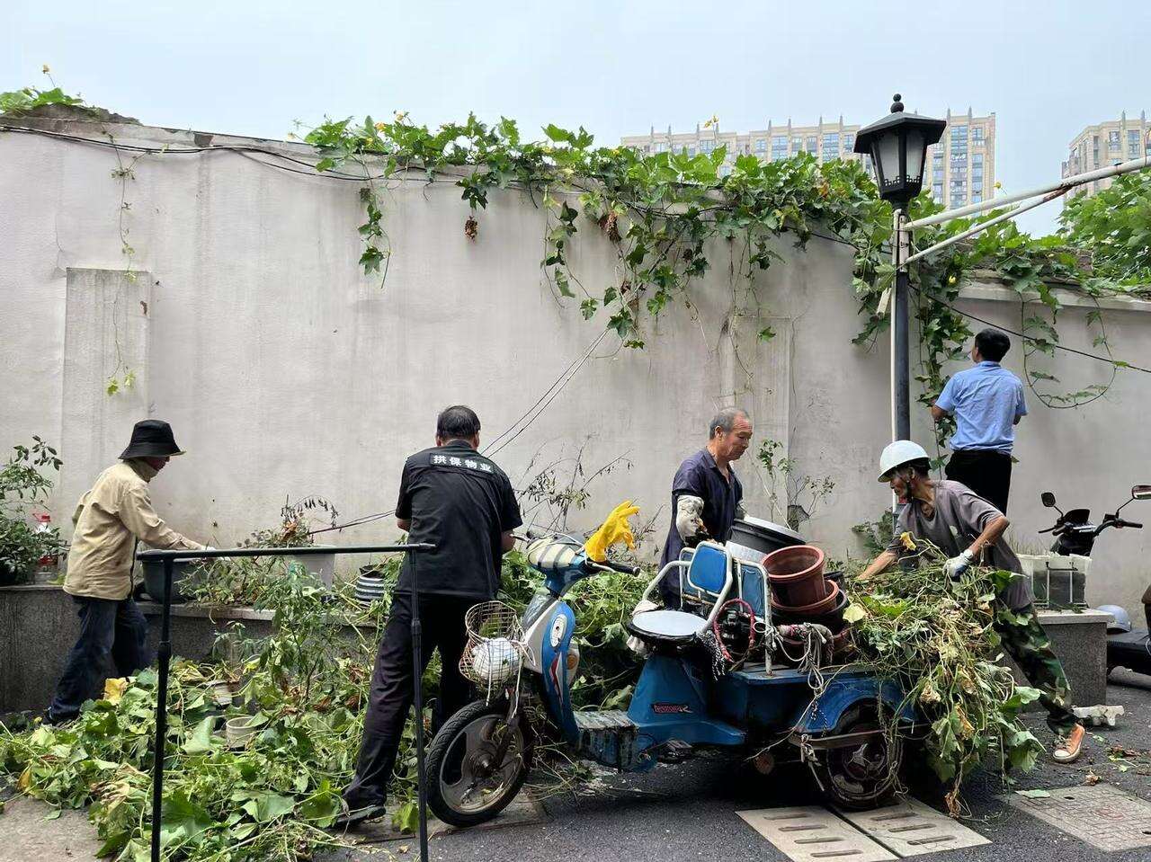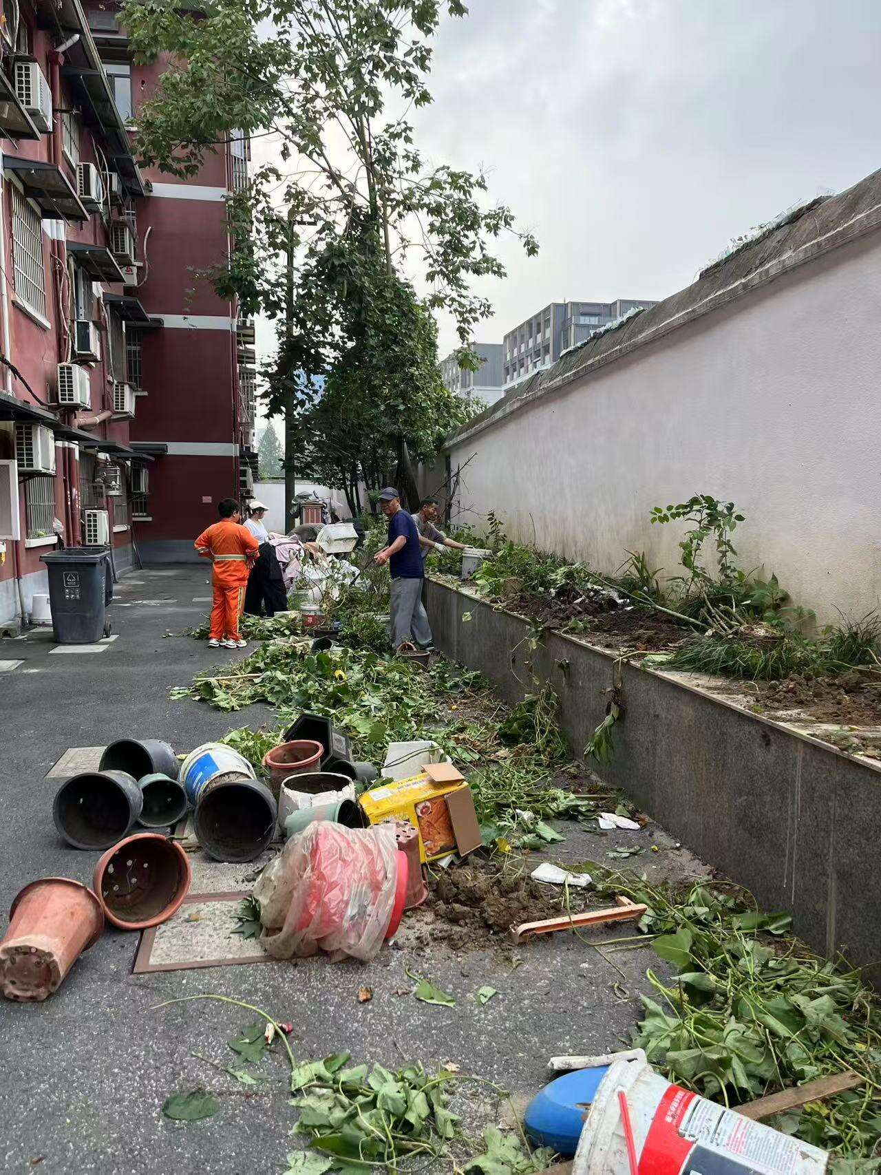 清扫现场,社区工作人员、物业保洁员与热心居民组成的志愿队伍分工协作、高效联动。面对绿化带内的杂草、落叶与隐藏垃圾,大家手持扫帚、垃圾袋细致清理,让绿化带重归整洁美观;针对公共区域私垦种菜问题,工作人员耐心讲解公共区域使用规定,在居民同意后统一移除并补种绿植,既维护小区规划秩序,又提升绿化覆盖率;同时,团队全面排查清运小区道路两侧、楼道拐角、地下车库的废弃瓶罐、破旧家具等杂物,累计清理各类垃圾5车,彻底清除卫生死角与安全隐患。