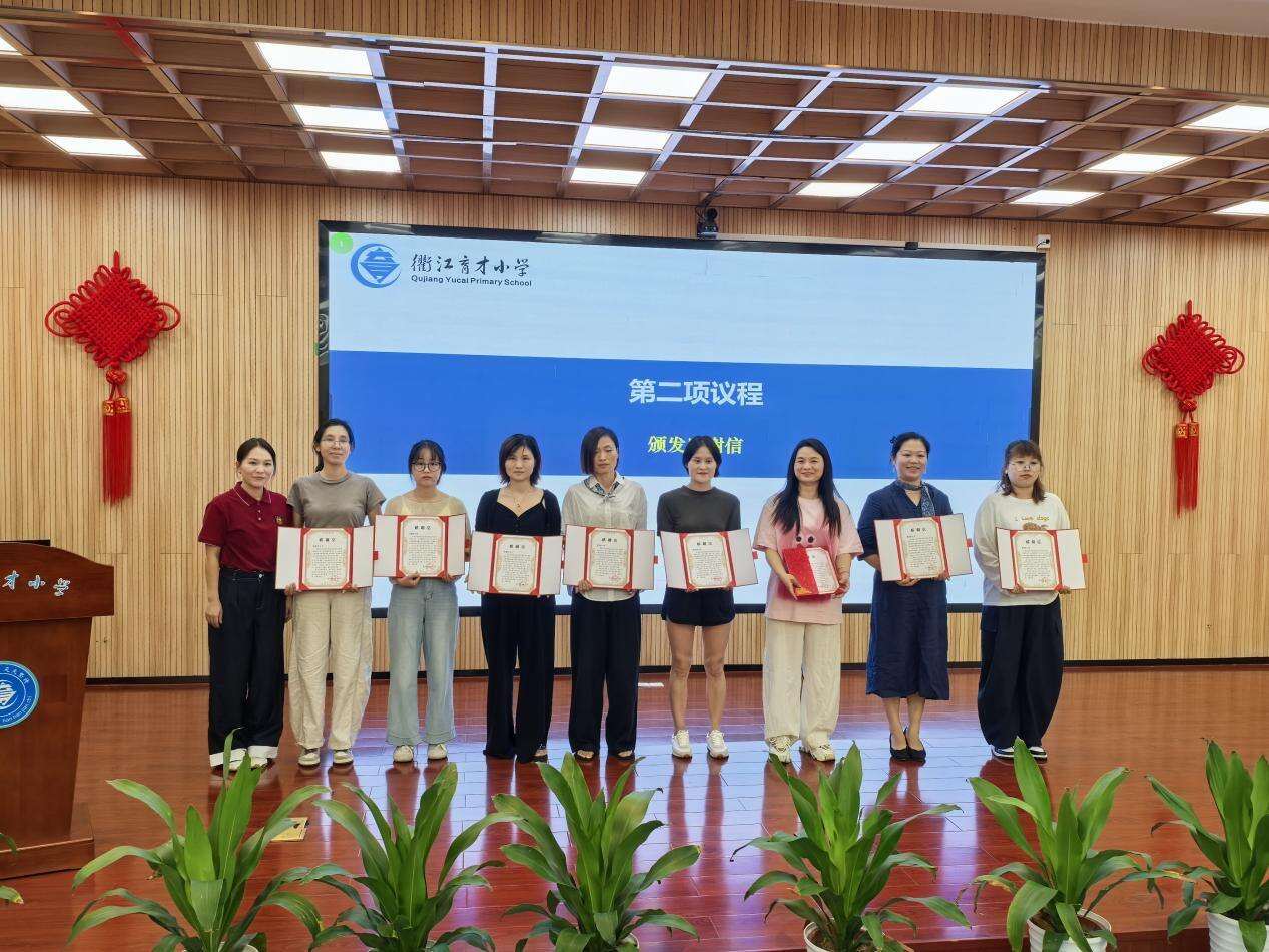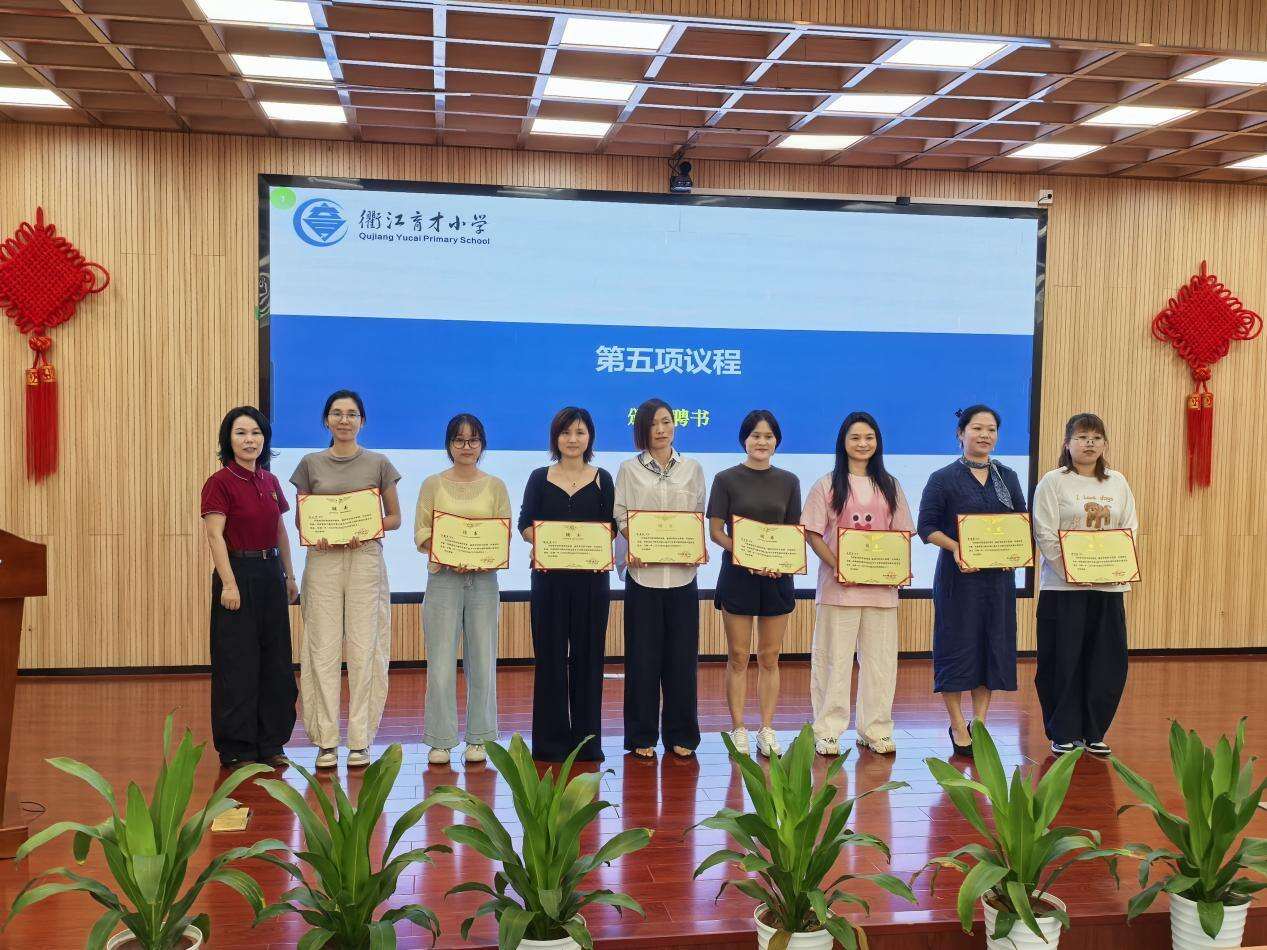 由俞慧副校长宣读《衢江育才小学关于聘任第五届校级家长委员会委员的决定》,正式确定新一届家委会委员名单。在全场热烈的掌声中,张红霞校长为第五届家委会委员一一颁发聘书。接过聘书的委员们神情庄重,这不仅是一份荣誉,更是一份沉甸甸的责任,他们将以更积极的态度参与学校管理,为孩子成长保驾护航。