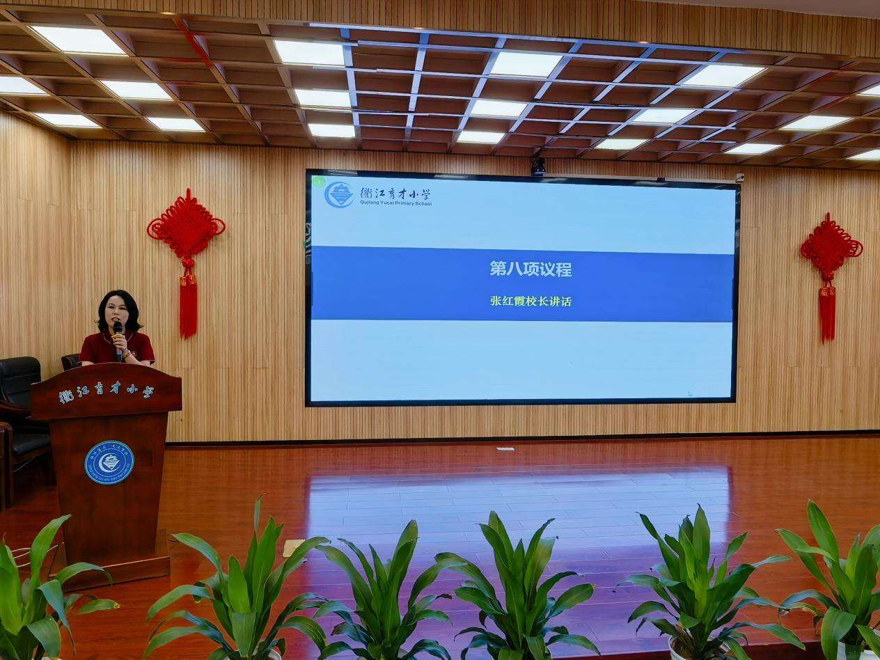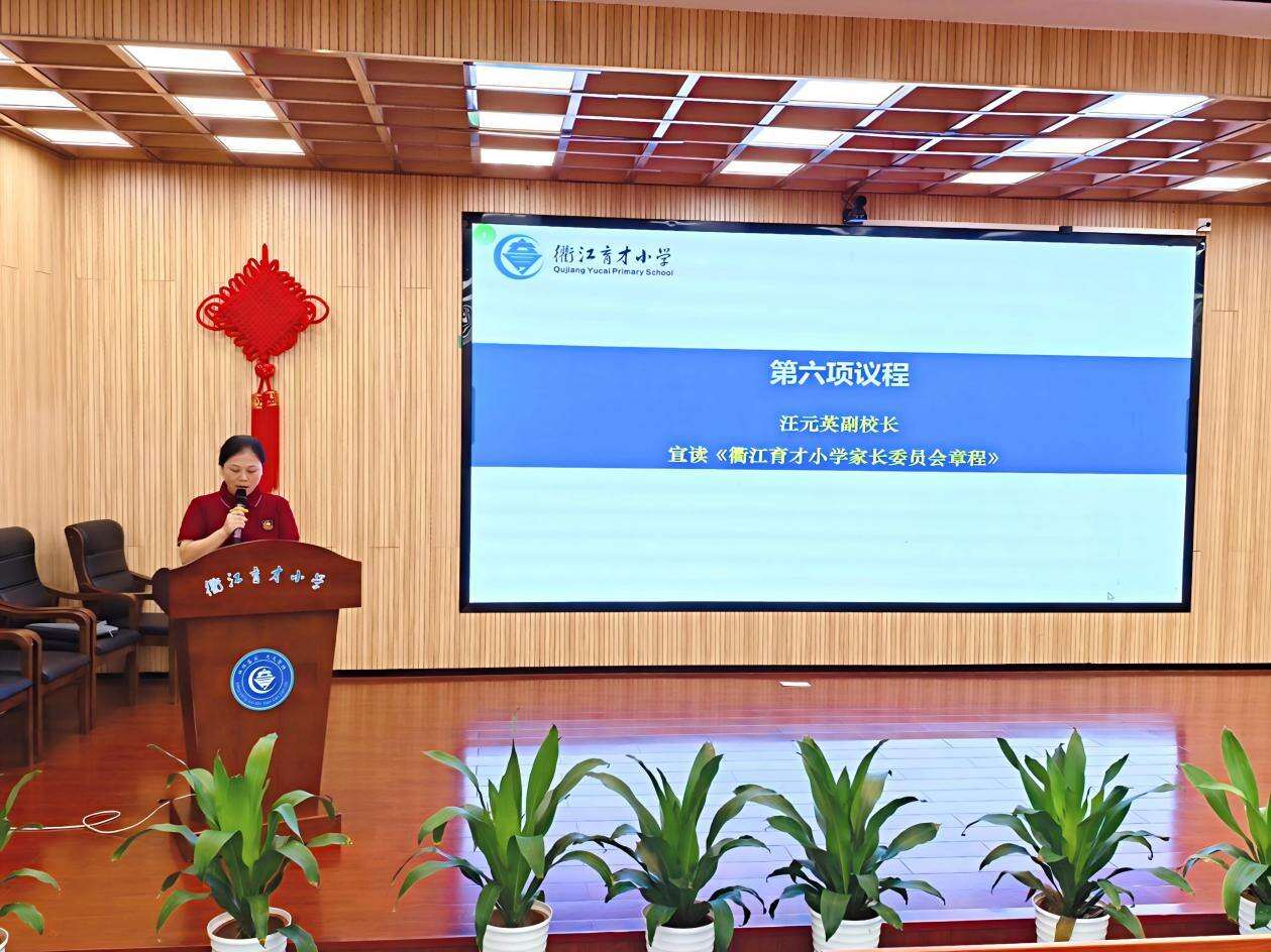 聘书颁发仪式后,汪元英副校长宣读《衢江育才小学家长委员会章程》。章程明确了家委会的职责、权利与义务,为新一届家委会开展工作提供了清晰指引,让家校合作有章可循、有据可依。