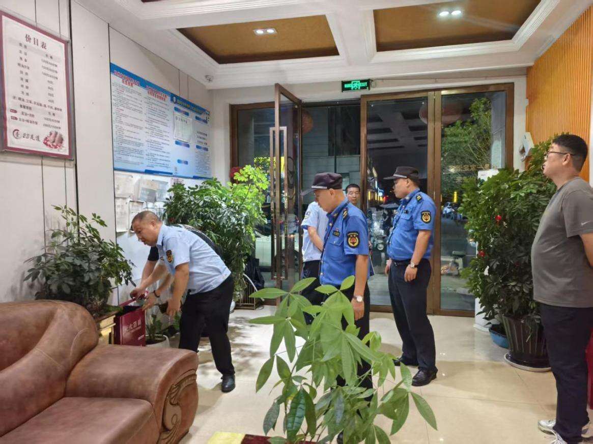 浙江在线10月17日讯(通讯员 马樱玮)近日,为切实保障临安区於潜镇辖区夜间经济安全有序,临安区综合性镇执法大队於潜中队联合镇应急消防站、经济发展办、城市管理办公室、社会事务办、派出所、市场监管所组成夜间专项检查组,对辖区酒吧、夜宵摊点、足浴店、KTV等重点娱乐场所开展全覆盖式消防、食品、燃气安全联合检查行动,重点排查消防设施配备、燃气使用安全、食品卫生许可证及从业人员健康证明等关键环节,为保障世界生物圈保护区大会圆满召开保驾护航。