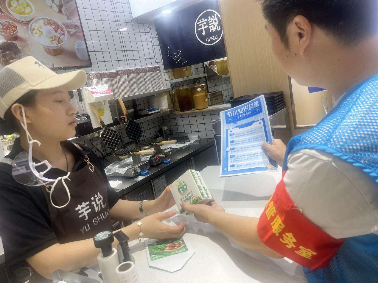 校园宣传结束后,社区将宣传触角延伸至辖区餐饮商户,以“一对一”精细化服务破解宣传“最后一公里”难题。工作人员逐一对接奶茶店、面馆等高频用水商户,通过“政策讲解、案例分析、物料发放”的组合模式开展精细化宣传。同时结合餐饮行业用水特性,向经营人与从业人员拆解“五水共治”在餐饮场景中的具体要求,特别强调废水处理需遵循“先隔油再过滤后排放”的流程,从源头避免油污凝结堵塞管道而引发的排水系统故障及环境污染。针对商户日常洗菜、清洗器具等环节,现场示范“短流水”操作方法,纠正“长流水”浪费习惯。此外,社区还贴心定制印有“节水小妙招”的主题纸巾,引导商户将其摆放于收银台、餐桌等显眼位置,让顾客在消费间隙直观接触节水知识,实现“商户宣传+顾客感知”的双向传播,让节水理念渗透至消费场景的每个细节。