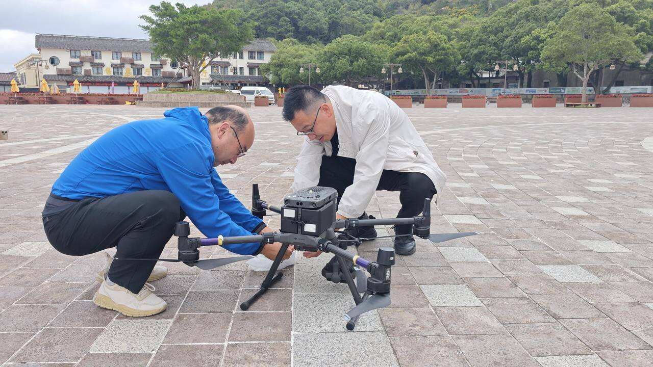 无人机从舟山朱家尖蜈蚣峙码头升空。由普朱管委会供图