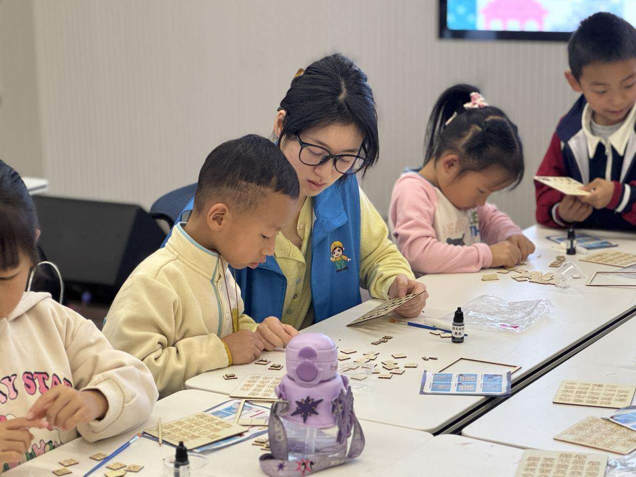活动分两阶段展开,首站设在滨江社区活动室,一场“活字印刷文化之旅”率先拉开帷幕。“有谁知道活字是谁发明的?”“那它和雕版印刷有什么不一样?”活动开场,图书馆的绘本讲师带着精心准备的《活字印刷术》绘本登场,通过色彩鲜明的画面、生动有趣的讲述,搭配互动提问,让孩子们轻松理解了活字印刷术的起源、原理及其对世界文明的深远影响,千年非遗的种子在孩子们心中悄然萌芽。