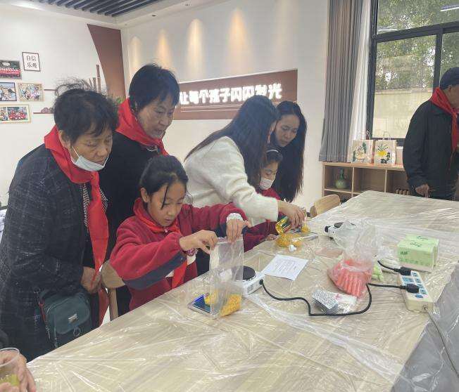 尤为令人感动的是,学校特意安排了退休教师与学生们携手制作润唇膏和护手霜的趣味活动。在轻松愉悦的氛围中,老教师们与孩子们默契配合,不仅加深了彼此间的情感纽带,更让老教师们重温了青春岁月的欢乐与激情,体验到了手工制作的无穷乐趣。