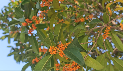 浙江在线10月31日讯(通讯员 陶燚倩)前段时间,一股强劲冷空气突袭杭城,气温断崖式下降,不少市民裹紧外套直呼“差点以为要入冬”。就在大家以为秋天要“匆匆退场”时,近日,河道边悄然传来了惊喜——往年早早绽放的桂花虽姗姗来迟,如今却已挂满枝头,清甜香气顺着河岸漫开,沁人心脾。