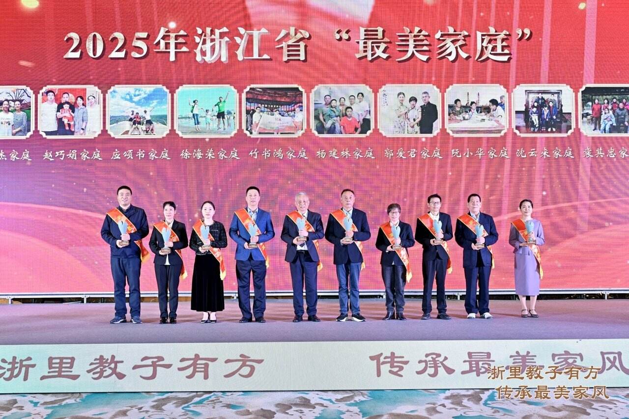现场正式发布2025年浙江省“最美家庭”名单,分别是杭州竹书鸿家庭、宁波竺士杰家庭、温州应颂书家庭、嘉兴赵巧娟家庭、绍兴沈云来家庭、金华郭爱君家庭、衢州阮小华家庭、舟山袁其忠家庭、台州徐海荣家庭和丽水杨建林家庭等10户家庭。活动特邀往届各类先进家庭代表为“最美家庭”颁授荣誉杯,旨在表达对家庭美德的致敬,也展示了“最美”精神在之江大地代代传承。