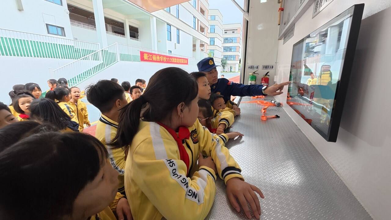 此外,消防宣传车带来沉浸式体验,车内模拟灭火系统、模拟报警装置及“找火灾隐患”游戏,帮助师生将理论转化为技能。